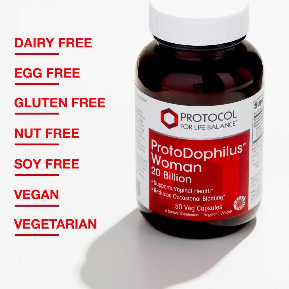 Protocol for Life Balance - Protodophilus Woman 20 Billion - Supports Vaginal Health, Helps to Reduce Occasional Bloating, Supports Immune System, Gastrointestinal Regularity - 50 Veg Capsules