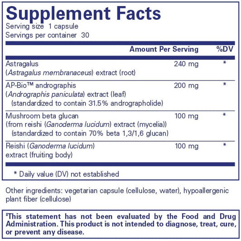 - Immune Supporting Blend: Contains a blend of astragalus, biologically standardized andrographis, and reishi mushroom beta glucans, including highly purified beta 1,3/1,6-D glucan and lectins derived from reishi mushroom.*