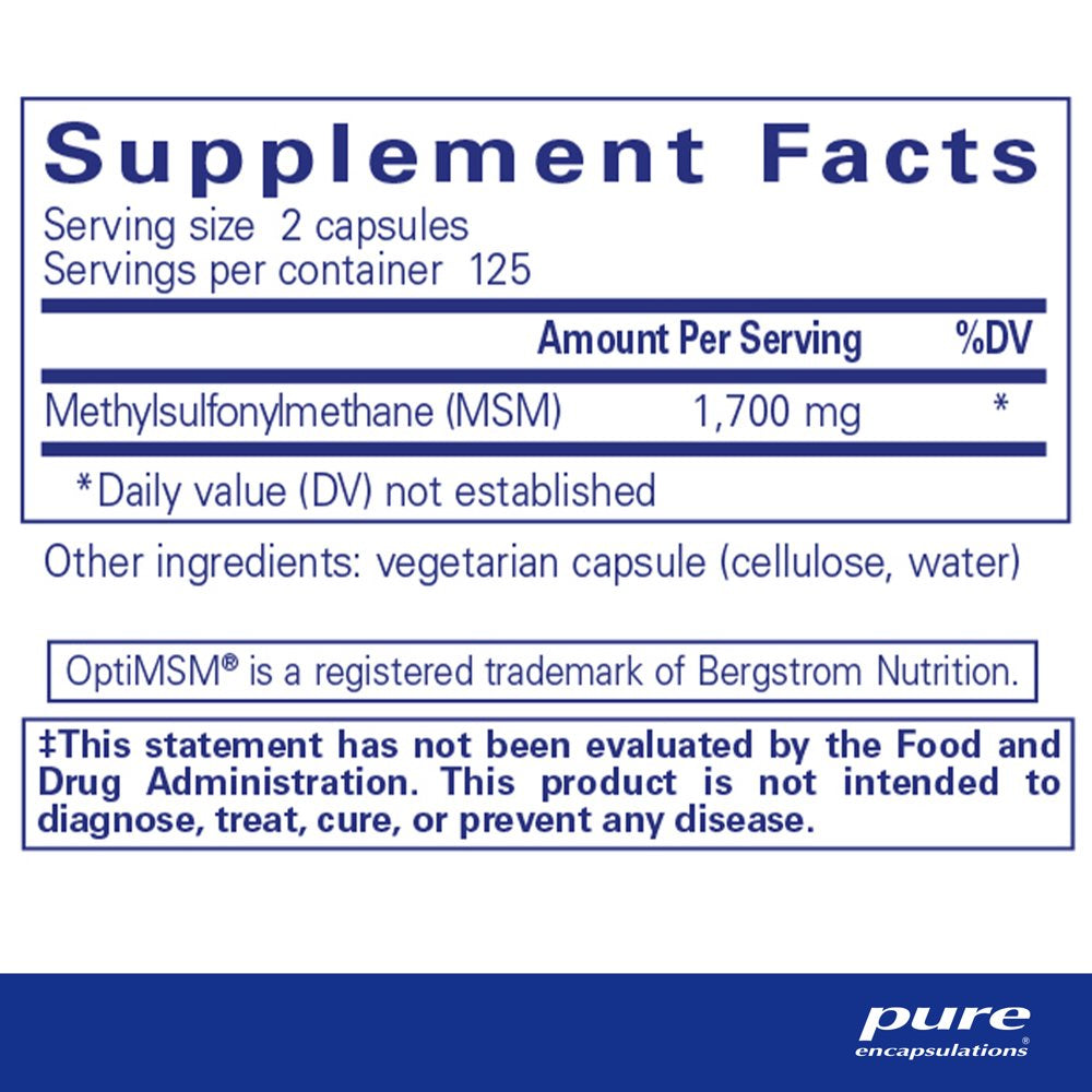 Pure Encapsulations MSM Capsules | Sulfur Supplement to Support Joints, Immune System, Connective Tissue, and Respiratory Health* | 250 Capsules