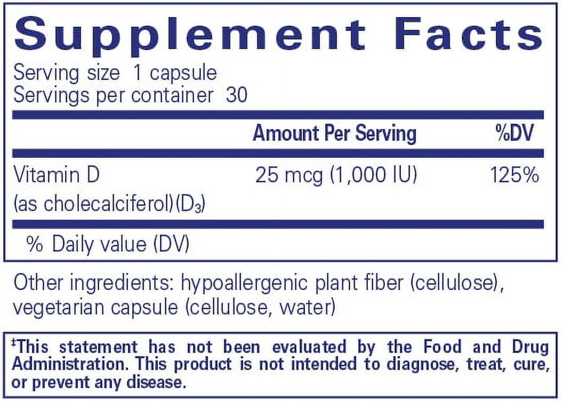 Pure Encapsulations Vitamin D3 25 Mcg (1,000 IU) | Supplement to Support Bone, Joint, Breast, Prostate, Heart, Colon and Immune Health* | 30 Capsules