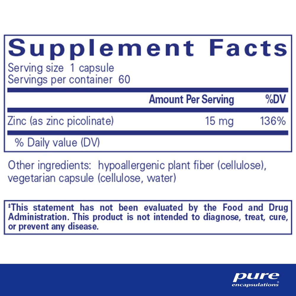 Pure Encapsulations Zinc 15 Mg | Zinc Picolinate Supplement for Immune System Support, Growth and Development, Wound Healing, Prostate, and Reproductive Health* | 60 Capsules