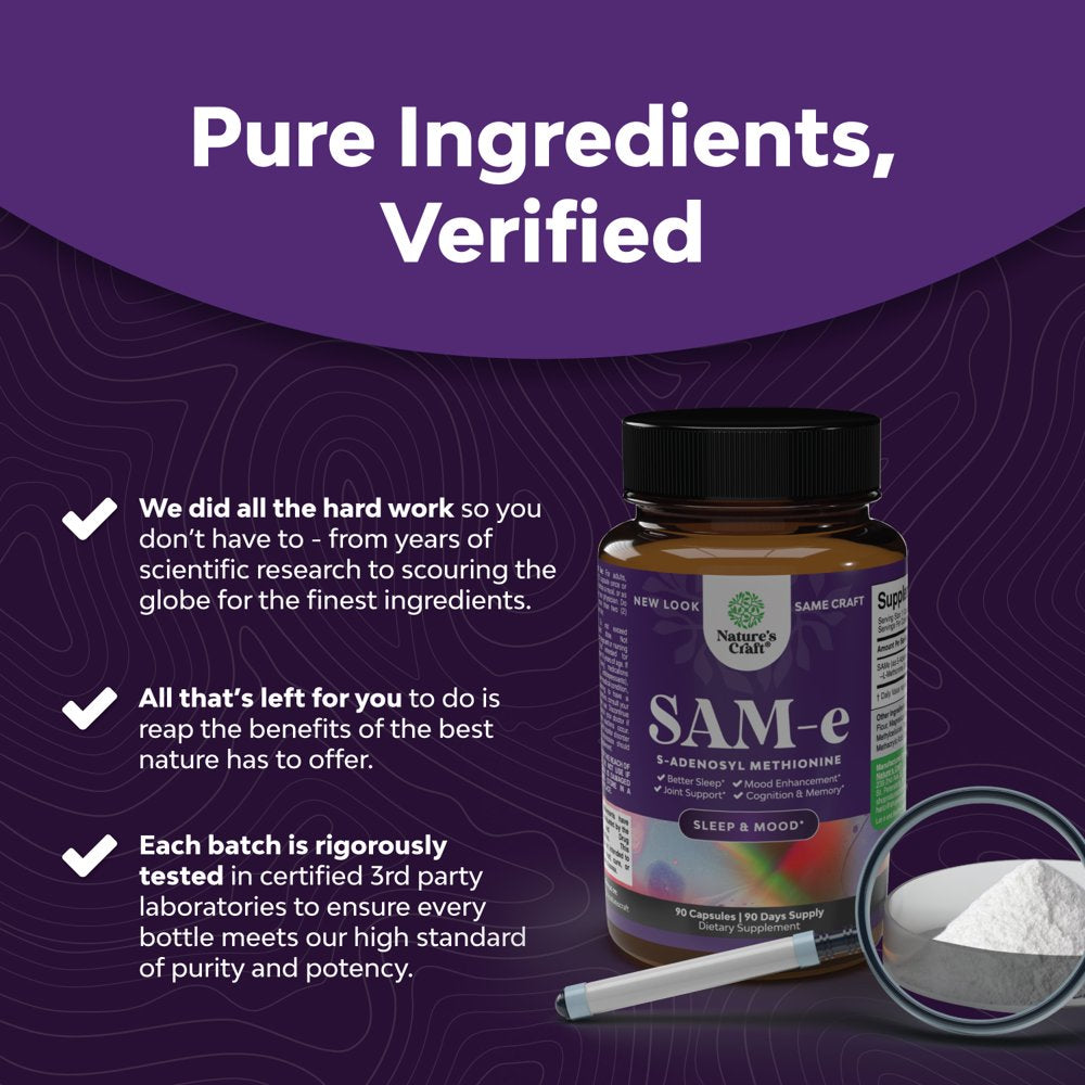 Pure SAM-E Nootropic Brain Supplement - Brain Support Supplement with S Adenosyl Methionine Memory Pills for Brain Health and Joint Health - Immune Support Supplement and Mood Support Supplement