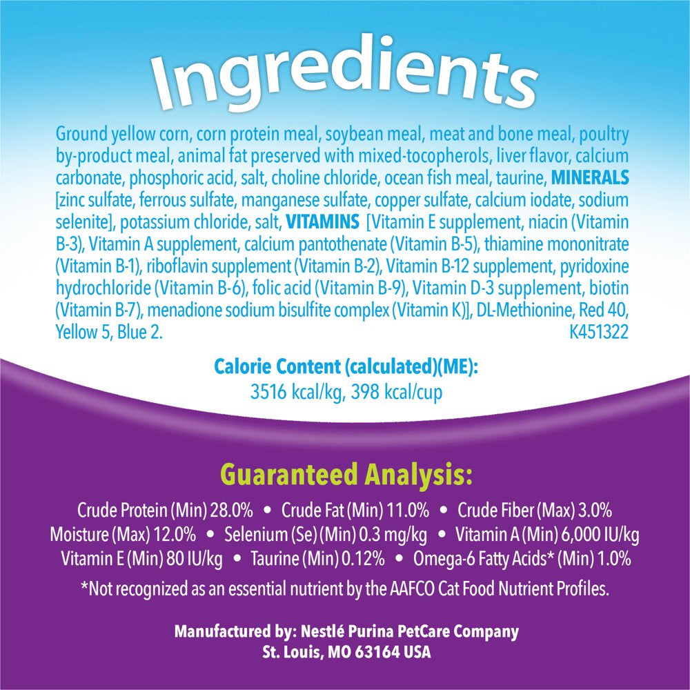 Surprise your cat with a nutritious bowl of flavorful fun every time you serve them Purina Kit and Kaboodle Original Poultry, Liver and Ocean Fish Flavors cat kibble. With no room for bowl boredom, Purina dry cat food blend offers a variety of fun crunchy shapes, four to be exact, to couple with its cat-thrilling combination of palate-pleasing goodness. Each Kit and Kaboodle dry cat food kibble shape represents a flavor, poultry, liver, or ocean fish, creating a blend of tastes any cat would go crazy over. The texture of this crunchy cat food dry kibble helps support clean teeth, while the essential vitamins and minerals in every serving help promote overall health. Feel confident knowing you are giving your furry friend the daily 100 complete and balanced nutrition for adult cats she needs while also making mealtime an engaging experience when you supply her with this adult cat dry food. It really is the whole kit and kaboodle. And get peace of mind knowing that each Purina cat food is crafted in Purina-owned facilities and meets the industry standards for quality and safety. Stop the comparison shopping; when you order Kit and Kaboodle Original, you're providing your pet with a Purina cat food that's backed by over 90 years of research and innovation from a brand you can trust.