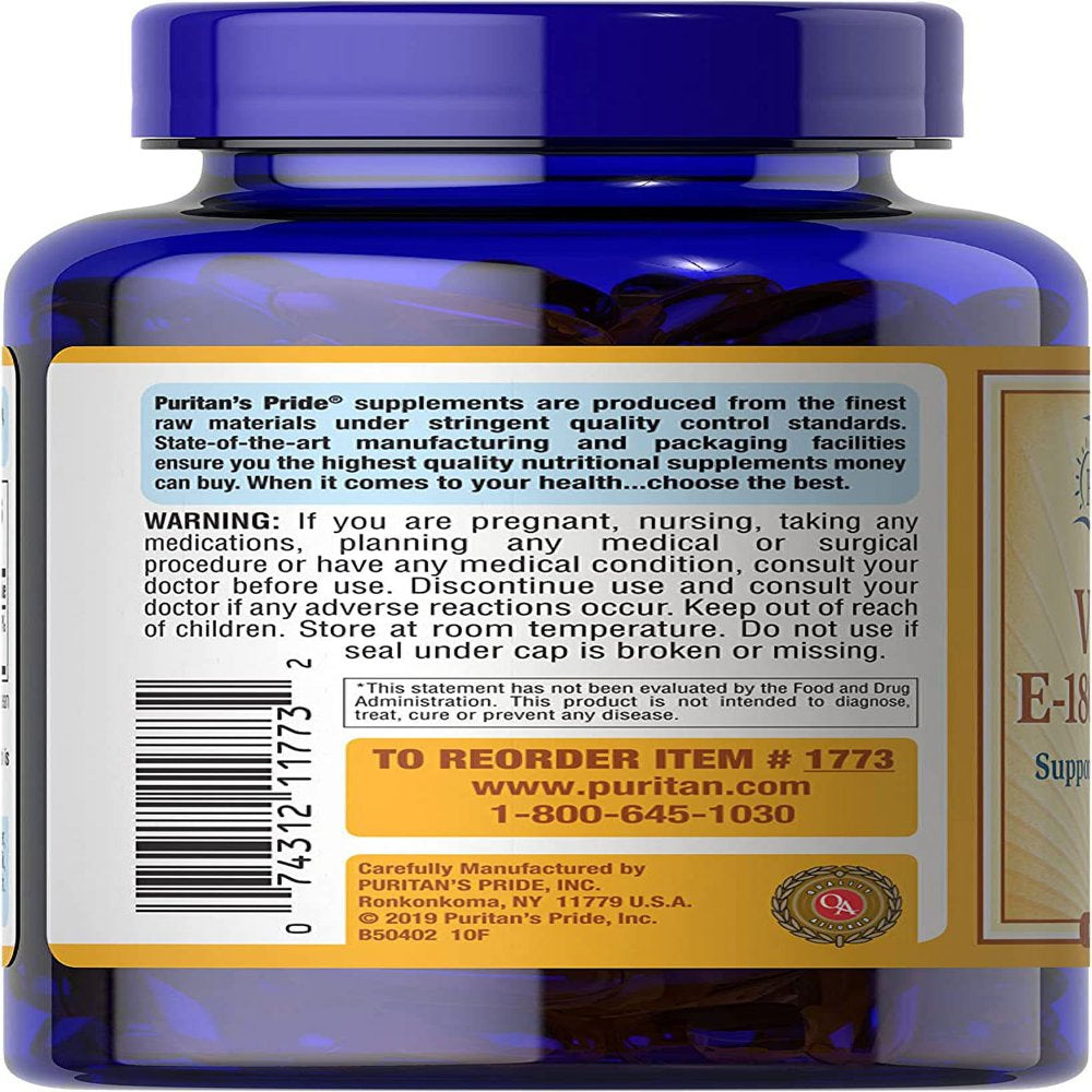 Puritan'S Pride Vitamin E-400 Iu (180 Mg) Supports Immune Health 250 Rapid Release Softgels