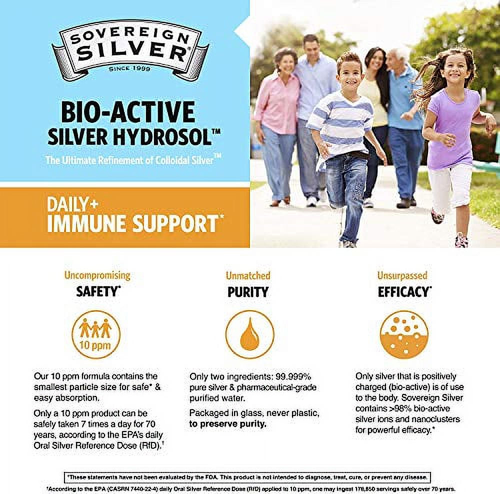 Sovereign Silver is the premium selling silver supplement in North America for immune support*. Sovereign Silver represents the ultimate refinement of the colloidal silver categor.With unprecedented particle size as small as 0.8nm, our colloidal silver is safe* & easier for the body to absorb.Sovereign Silver has only two ingredients: 99.999% pure silver and pharmaceutical-grade purified water.Naturally reduces pain, inflammation, swelling, redness & heat to promote enhanced wound healingPromotes skin healing, fights minor skin infections, reduces topical pain & calms skin irritation