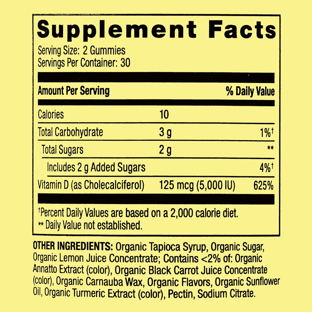 - Spring Valley Extra Strength Vitamin D3 Bone & Immune Health Dietary Supplement Vegetarian Gummies, 125 mcg (5,000 IU), 60 Count