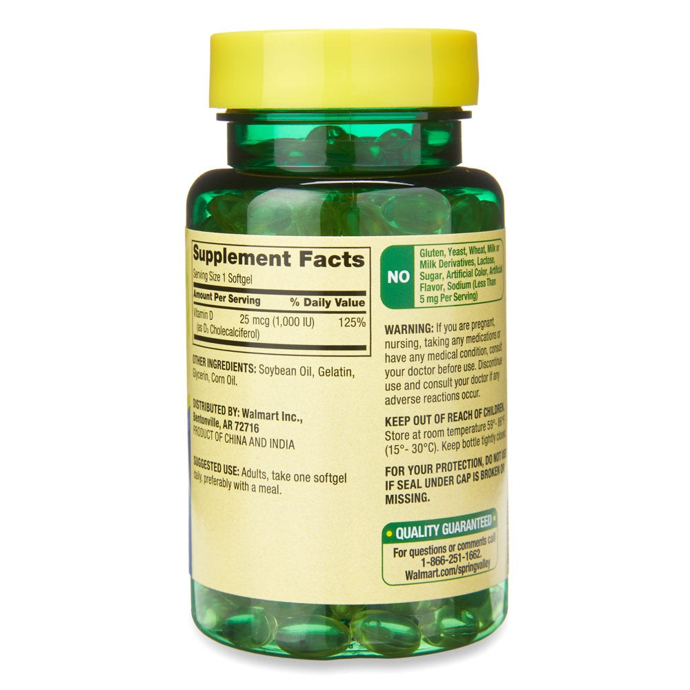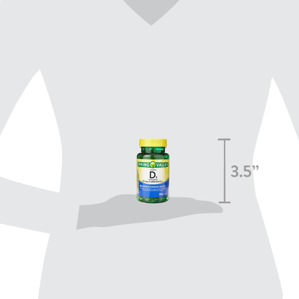 - Spring Valley Vitamin D3 Bone & Immune Health Dietary Supplement Softgels, 25 mcg (1,000 IU), 200 Count
