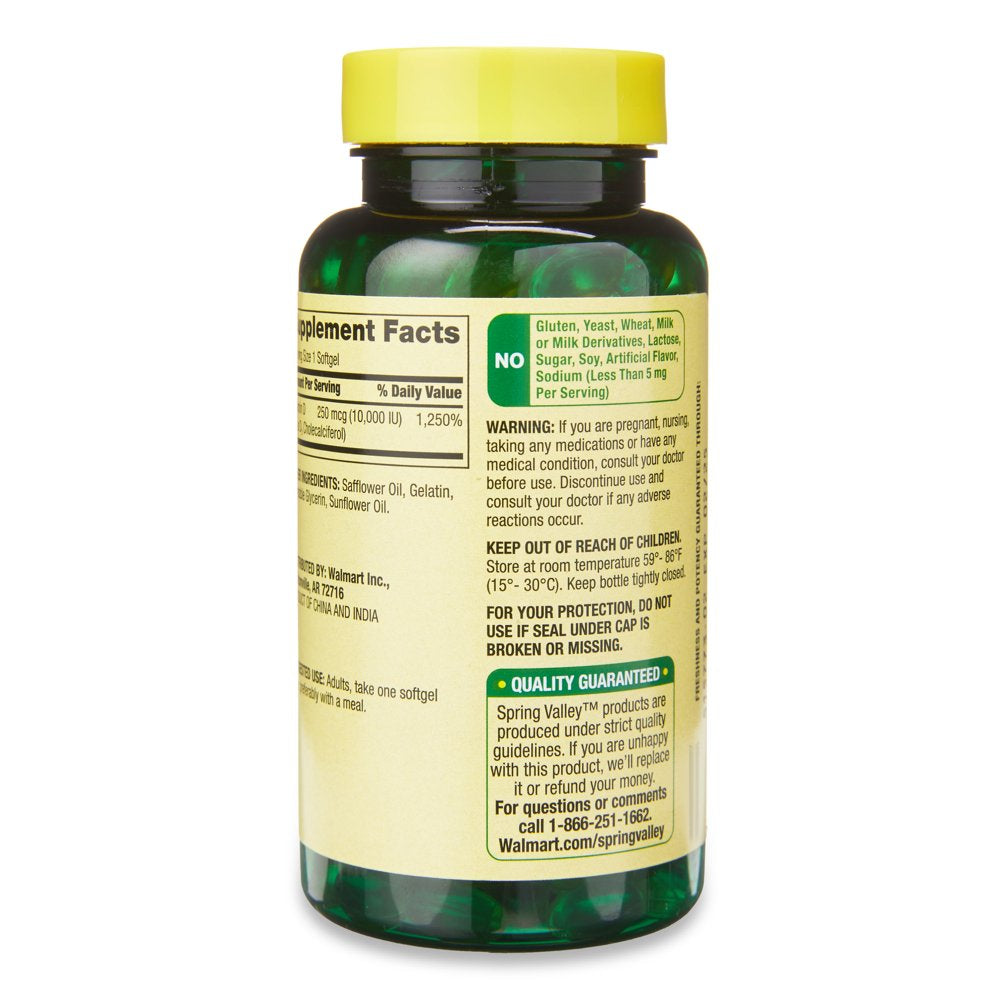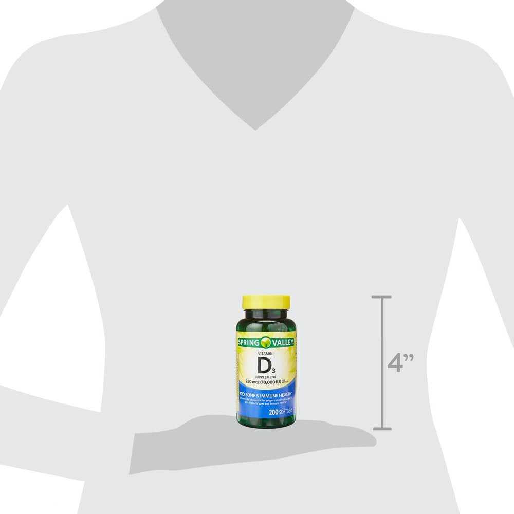 - Spring Valley Vitamin D3 Bone & Immune Health Dietary Supplement Softgels, 250 mcg (10,000 IU), 200 Count