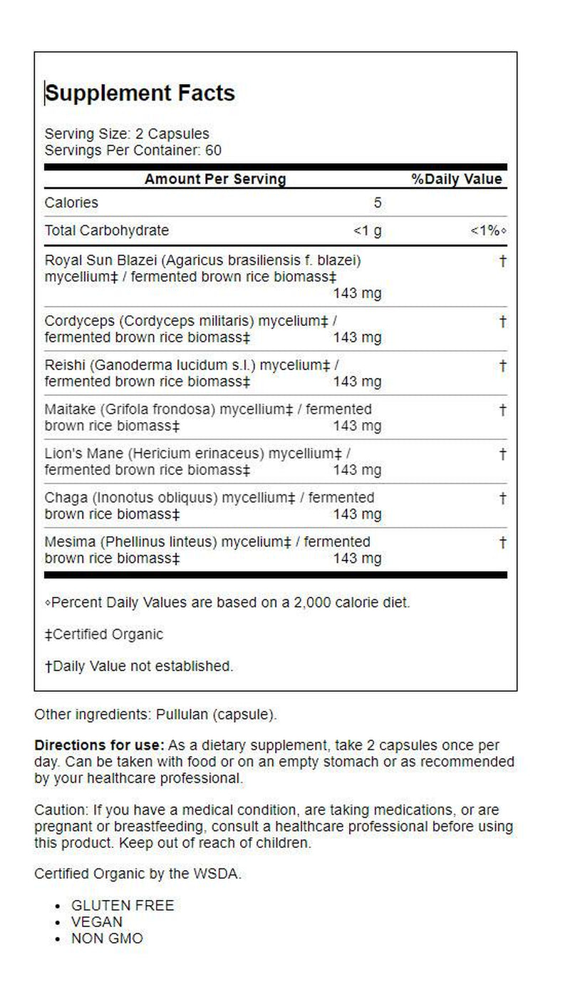 Stamets 7- Daily Immune Support with Organic Mushroom Blend (120 Vegetarian Capsules) - 120 is backordered and will ship as soon as it is back in stock.