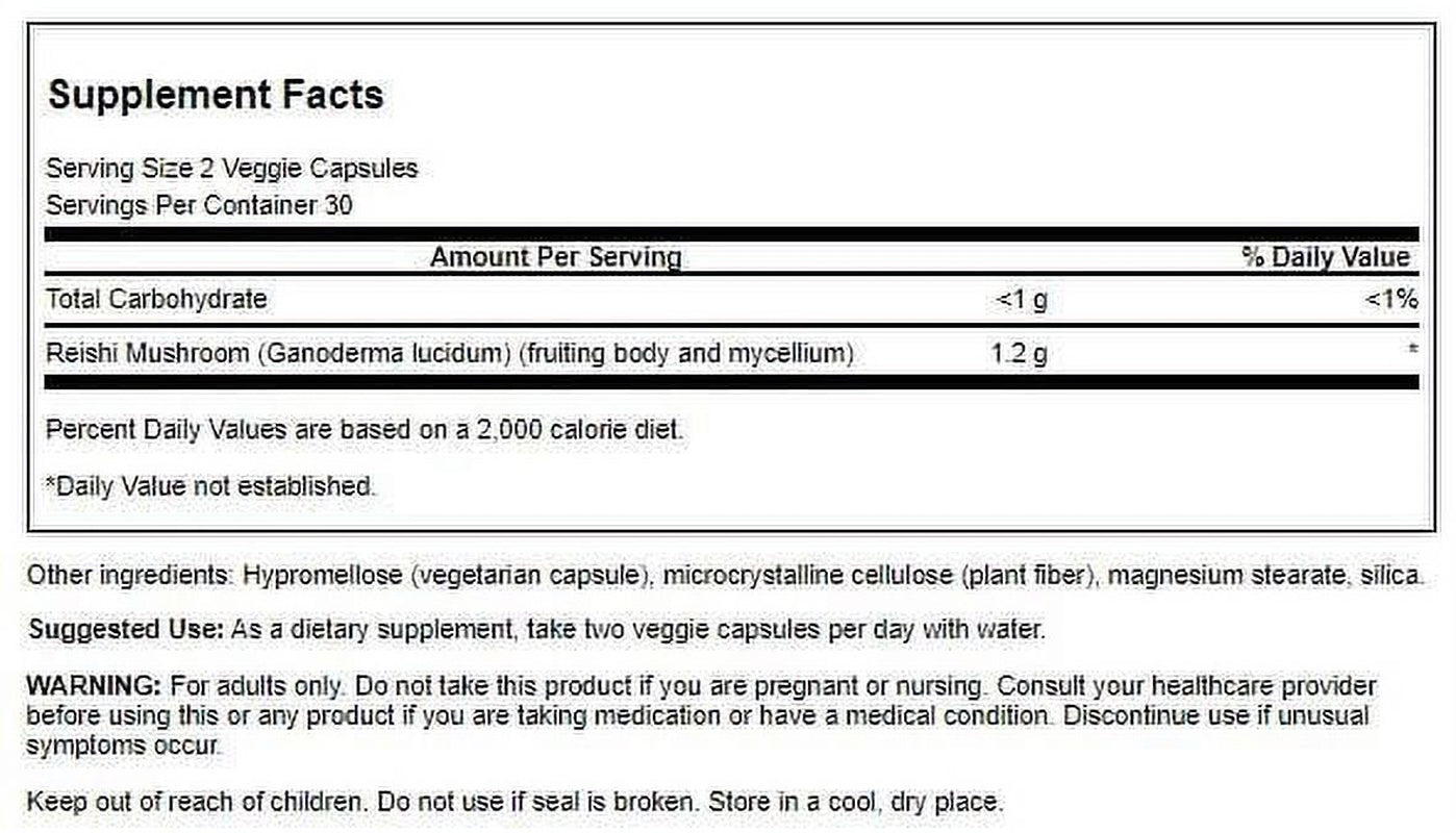| Product Name | Swanson Full Spectrum Immune Support Reishi Mushroom 600 mg 60 Capsules |