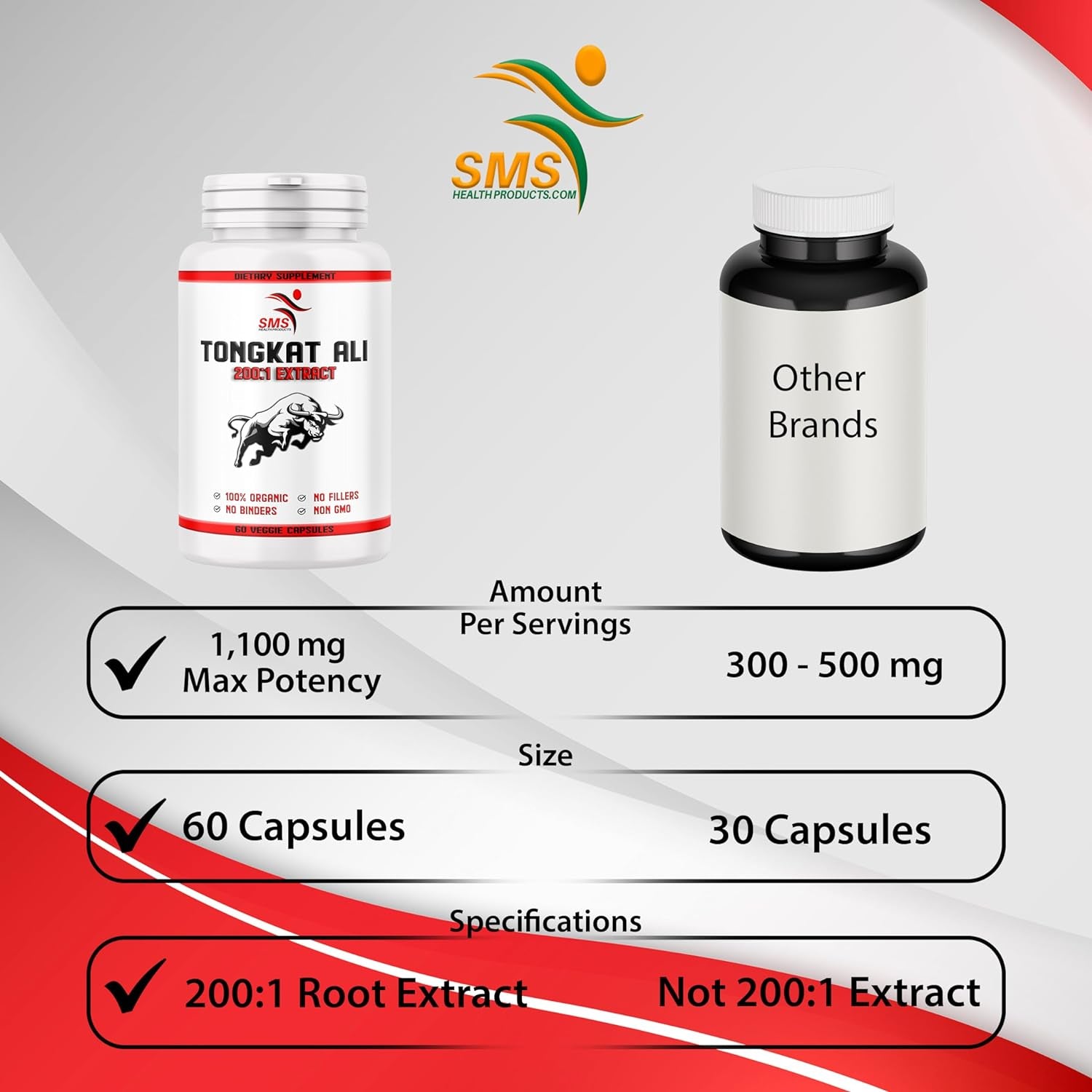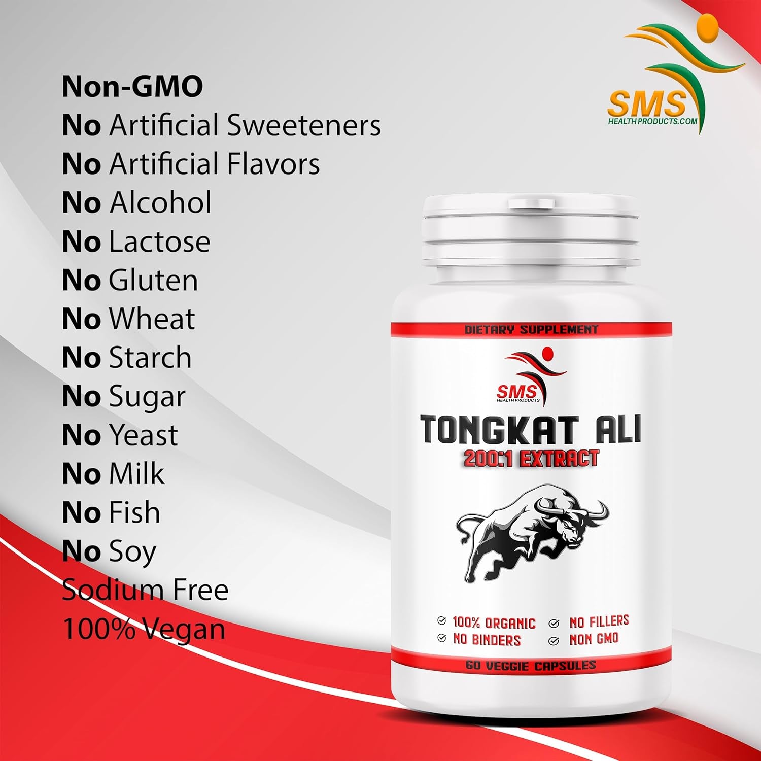 Tongkat Ali 200:1 as Long Jack Extract (Eurycoma Longifolia), 1000Mg per Serving, 60 Veggie Capsules, Supports Energy, Stamina and Immune System for Men and Women, Indonesia Origin, Non-Gmo