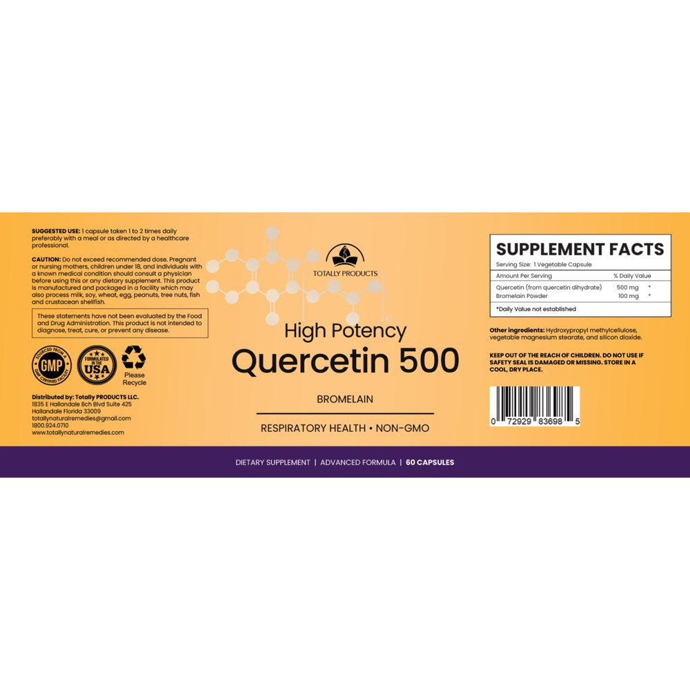 Totally Products Quercetin with Bromelain, Balanced Immune and Respiratory System, 60 Veg Capsules