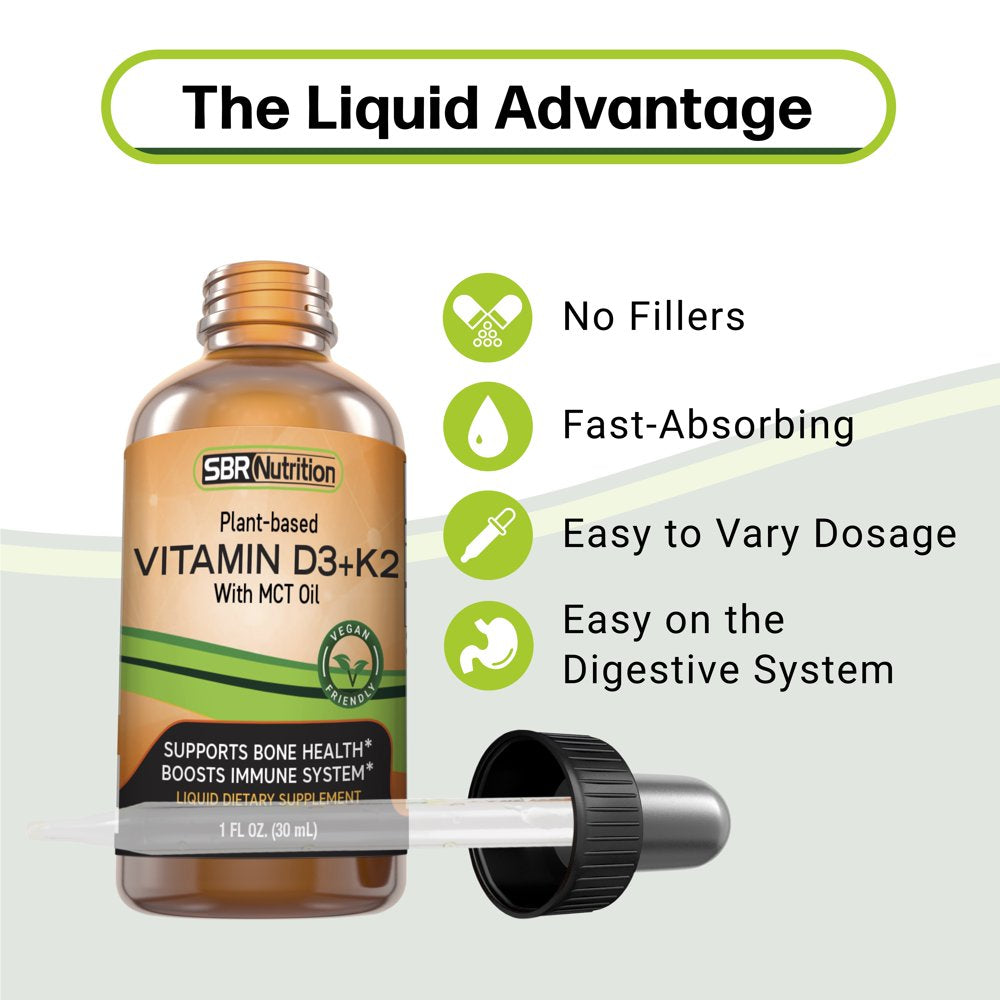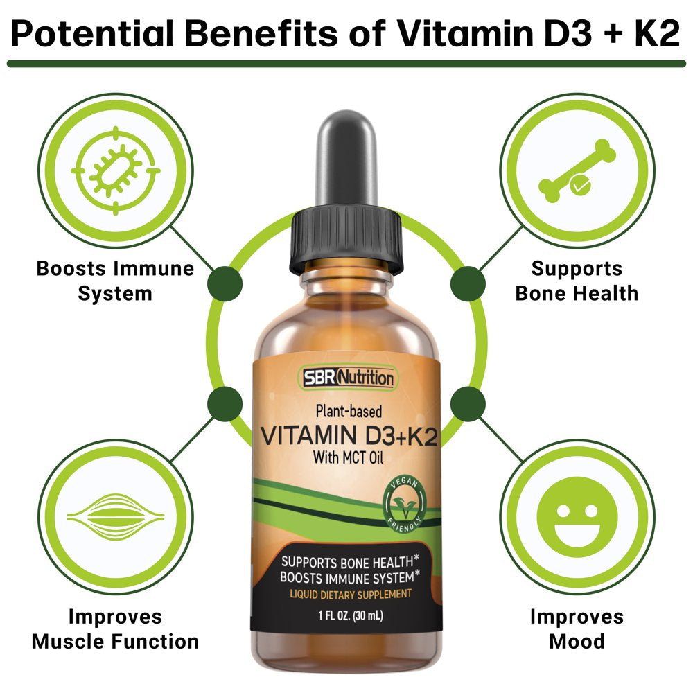 SBR Nutrition brings you the highest quality vitamin D3 supplementation - now vegan friendly! - with vitamin K2 (as MK-7), the form of K2 with the highest bioavailability. Vitamin D3, known as the sunshine vitamin, is the same biologically active form of Vitamin D you get from the sun’s ultraviolet B (UVB) rays. While Vitamin D ensures that calcium is absorbed, Vitamin K2 directs the calcium to your bones instead of your joints and arteries, where too much calcium could be problematic.