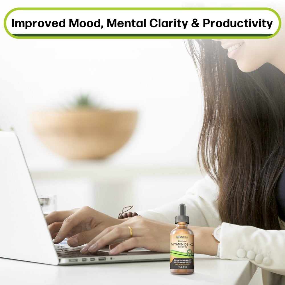 Vegan Vitamin D3 + K2 (MK-7) Sublingual Liquid Drops with MCT Oil | Helps Support Strong Bones and Healthy Heart, Boost Immune System