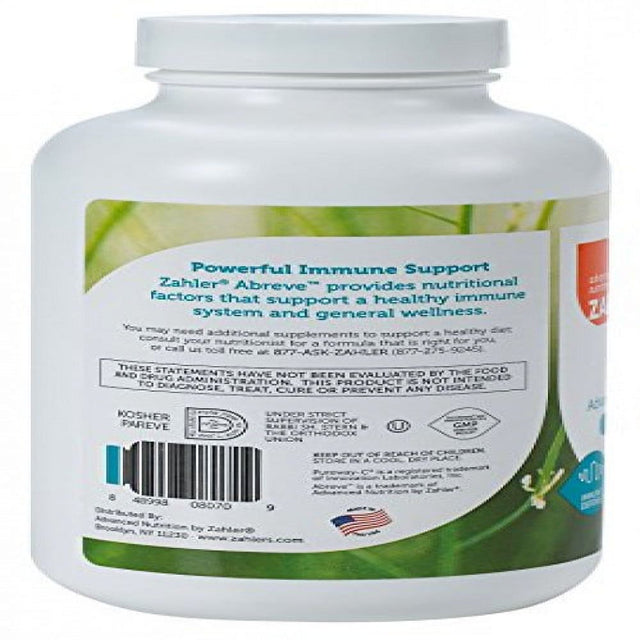 | Features | Zahler's Abreve is a powerful and advanced immune support formula which is rich in antioxidants, Contains high doses of Pantothenic Acid and Vitamin C, Provides the body with important nutritional factors that support a healthy immune system and general wellness, All-Natural formula to keep you healthy all year round, Manufactured and bottled in a state of art GMP certified facility |