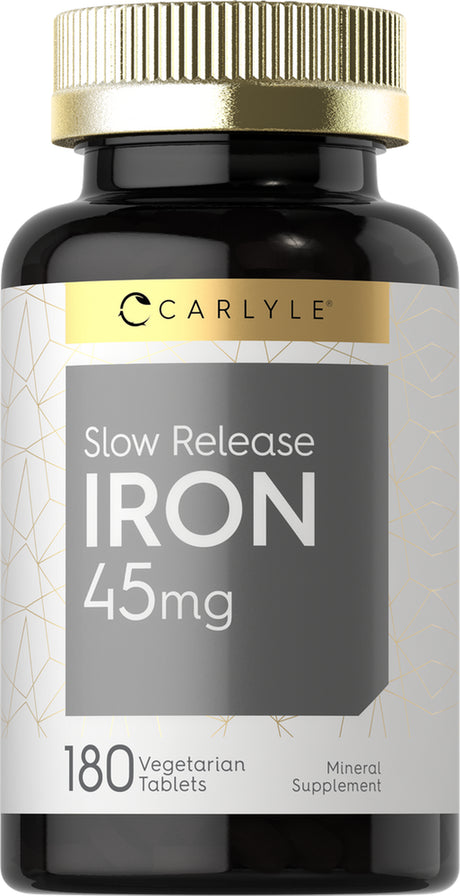 Slow Release Iron 45 Mg | 180 Tablets | Vegetarian Formula | Ferrous Sulfate | by Carlyle
