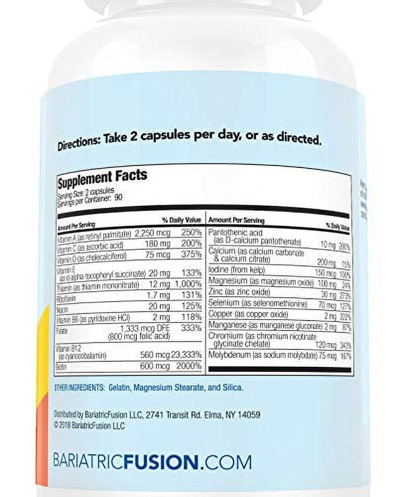 Bariatric Fusion Bariatric Multivitamin Capsules without Iron for Post Bariatric Surgery Patients Including Gastric Bypass and Sleeve Gastrectomy, 2 Capsules Daily, 180 Count, 3 Month Supply