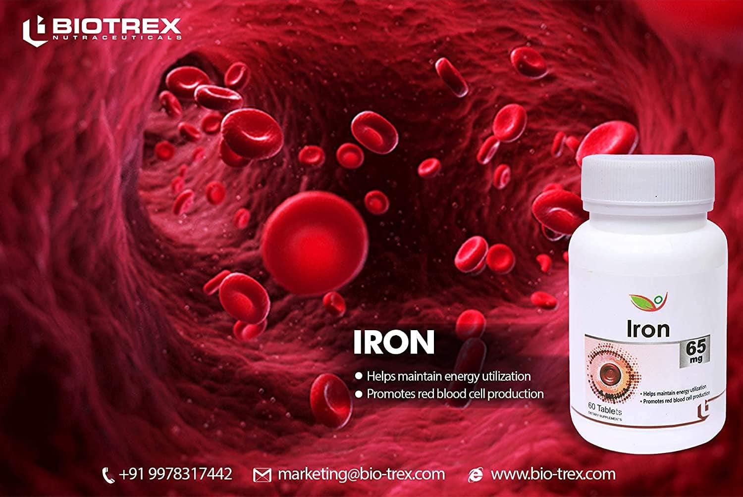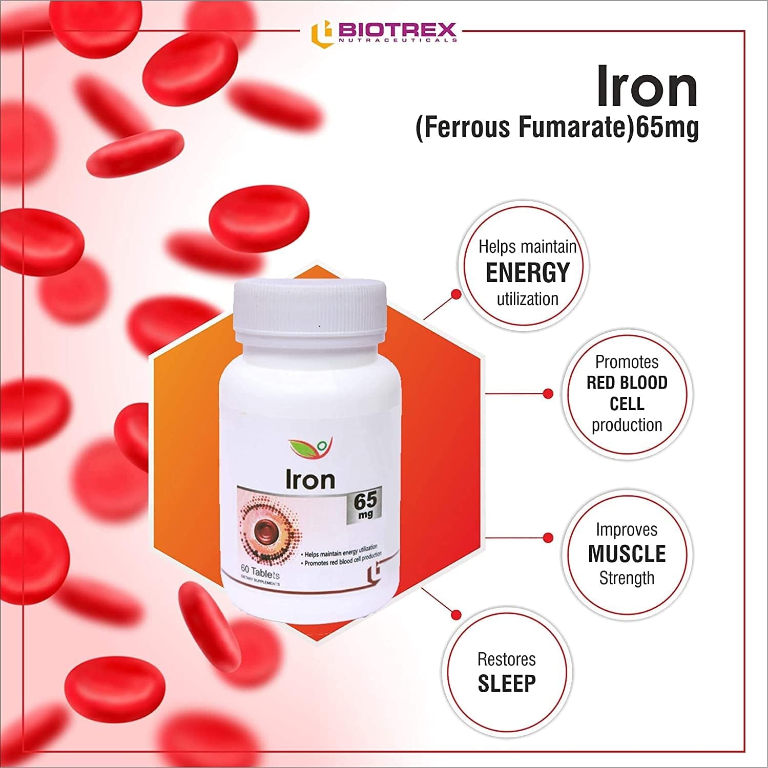 Biotrex Nutraceuticals Iron Ferrous Fumarate 65Mg Tablets - 60 Tablets