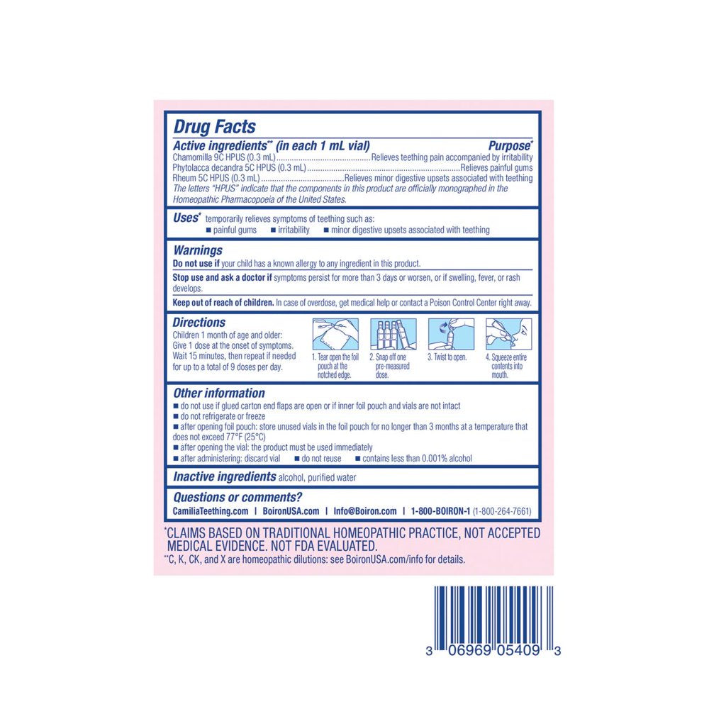 Boiron Camilia Teething Drops for Daytime and Nighttime Relief of Painful or Swollen Gums and Irritability in Babies, Irritability, 30 Single Liquid Doses