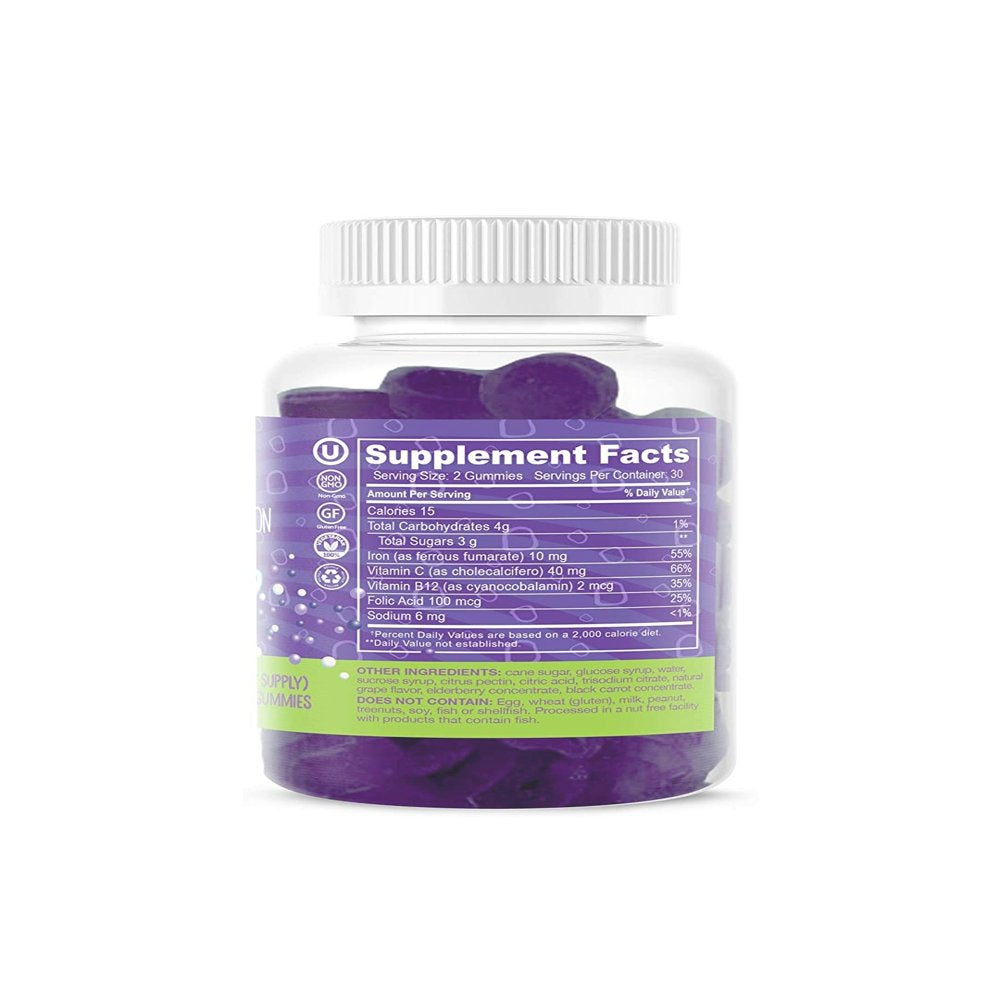✅ RED BLOOD CELLS - These delicious supplement gummies contain 10mg of Iron (as ferrous fumarate), 40mg of Vitamin C, 2mcg of Vitamin B12 and 100mcg of Folic Acid. These essential vitamins and minerals are important for red blood cell formation and iron absorption. ✅ INCREASED BIOAVAILABILITY - Because we've fortified each tasty gummy chew with micronutrients, your body can absorb the iron more efficiently compared to supplementing with just iron alone. That means better iron support with every serving (2 gummies per serving). ✅ DELICIOUS FRUIT CHEWS - Each Iron plus Vitamin C & B12 gummy is made with real fruit pectin to give it a delicious taste and pleasant texture. No more choking down lots of pills, capsules, tablets or messy powders. Each container has 60 gummies (30 servings). ✅ GLUTEN FREE - Each serving is made from Non-GMO sources and is Gluten Free, Halal Safe, Vegan, Gelatin Free and made with Natural Flavors. We don't add junk fillers and each bottle contains a child resistant safety cap to help protect your family. ✅ ENJOY YEAR ROUND – Daily iron supplementation is important for kids, teens and adults of all ages. Help avoid iron deficiency with these tasty and easy to take real fruit gummy chews. Join thousands of happy customers...Click Add-to-Cart to order Today!