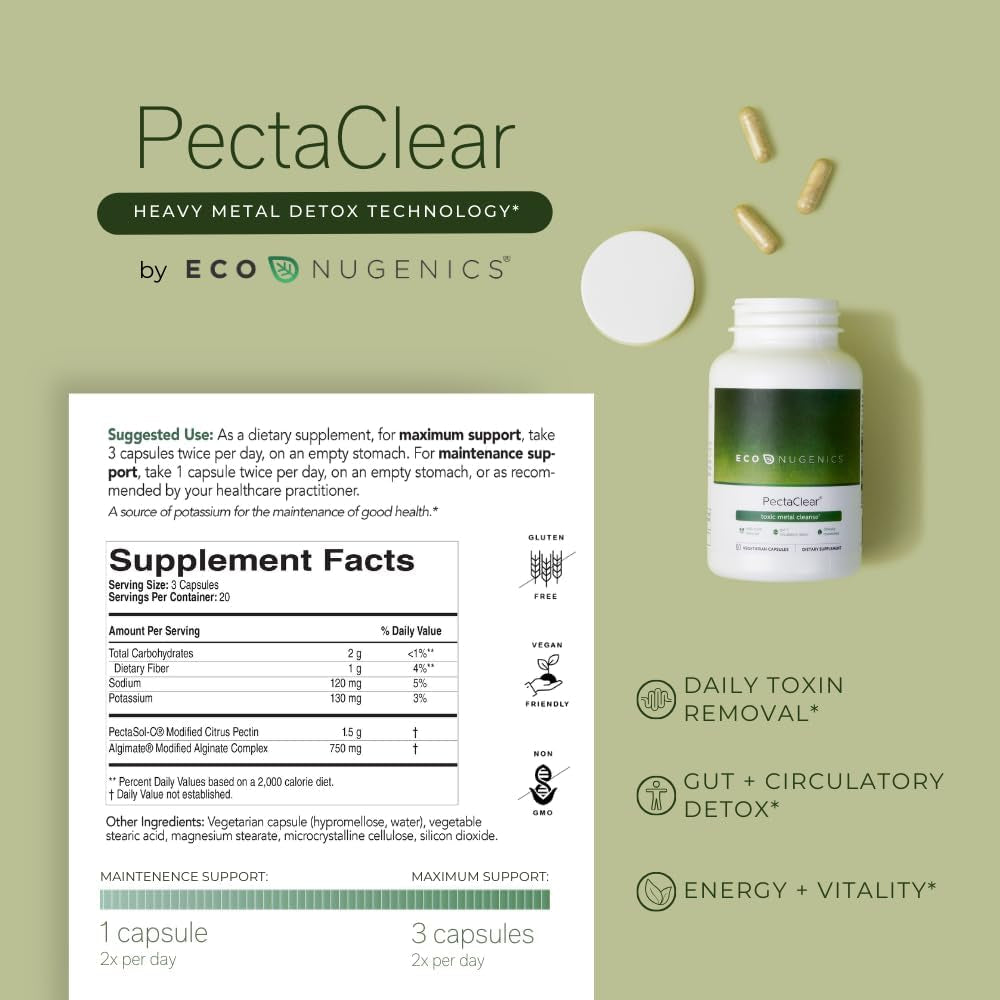 Econugenics Pectaclear Healthy Detoxification Supplement with Modified Citrus Pectin and Alginate - Provides Safe and Natural Support against Environmental Toxins and Pollutants (60 Capsules)