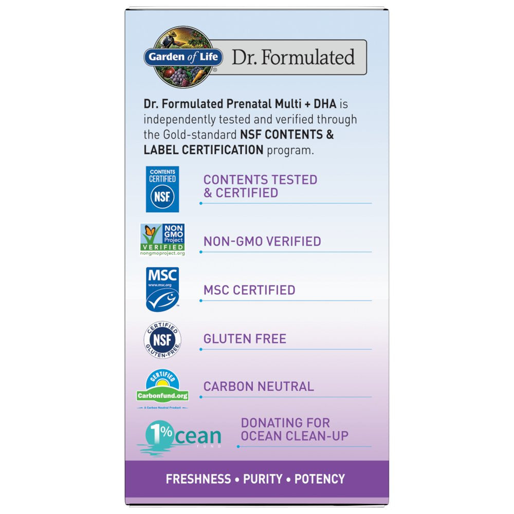 Garden of Life Dr. Formulated Prenatal Multi + DHA | for Mom'S Nutrition & Baby'S Development| Once Daily | Folate & Iron | 30Ct