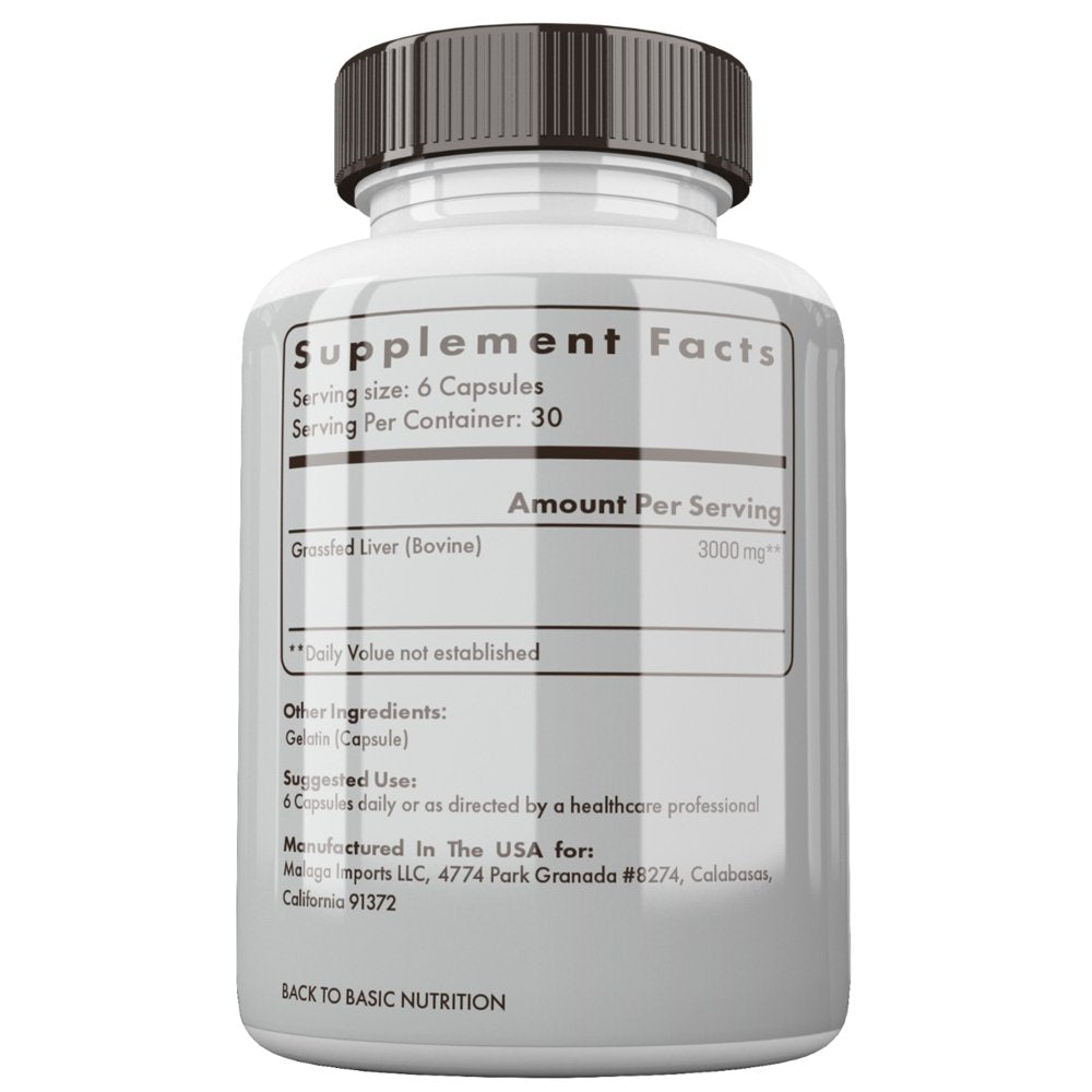 Grass Fed Desiccated Beef Liver Capsules (180 Pills, 600Mg Each) - Natural Iron, Vitamin A, B12 for Energy - Humanely Pasture Raised Undefatted in New Zealand and Argentina without Hormones