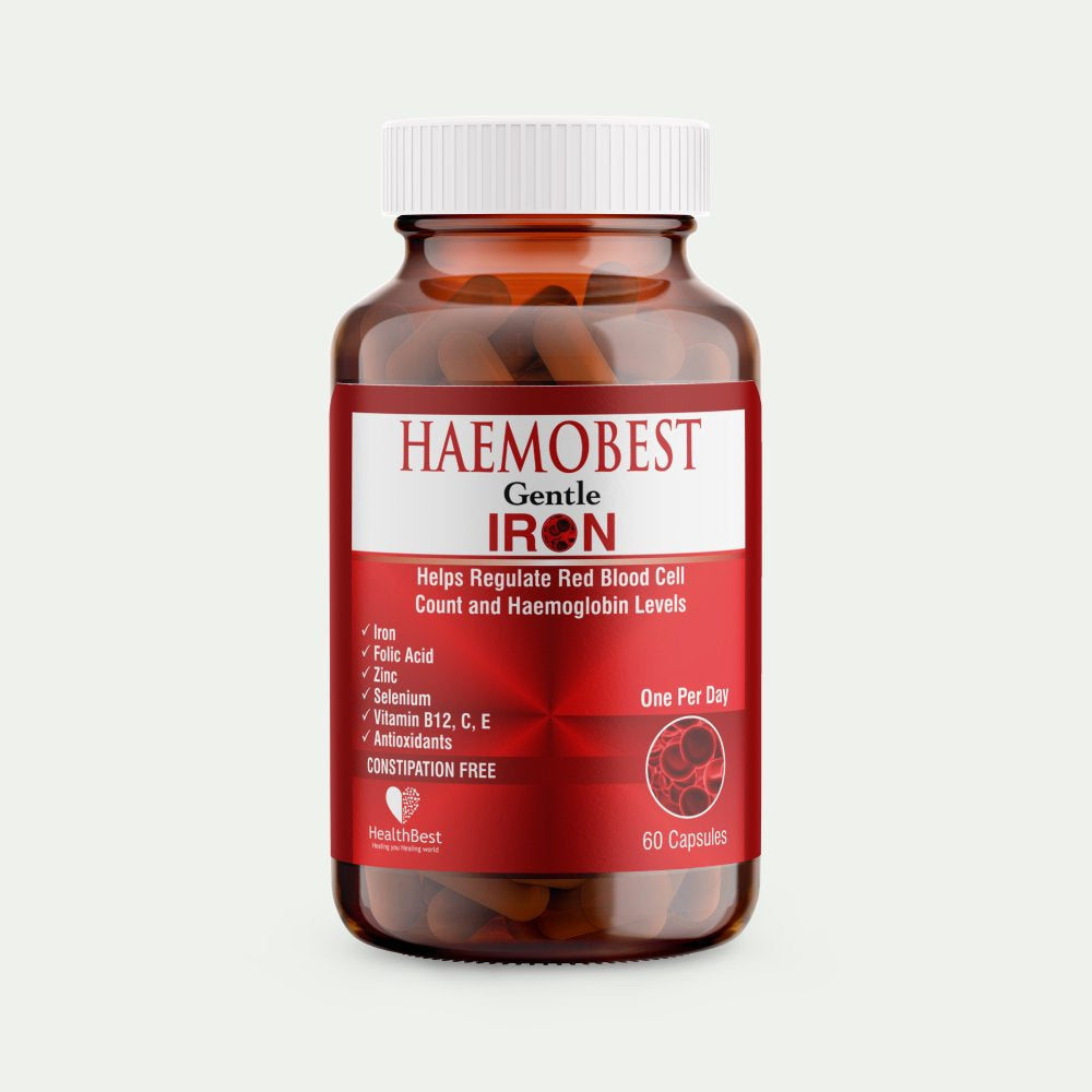Product Description: Haemobest is gentle iron supplement with zinc, Selenium, Folic Acid, Vitamin B12,C and E formulated to deliver an ideal amount of iron to the body while remaining gentle on the stomach. Iron contributes to the normal formation of red blood cells and hemoglobin and normal oxygen transport in the body. Hemoglobin carries oxygen to the brain, heart, muscles and to tissues throughout the body. Item included in the package: 1 Bottle - 60 Capsules Country of Origin: India