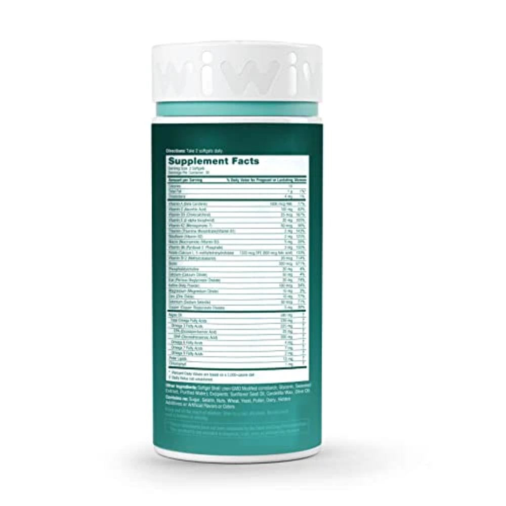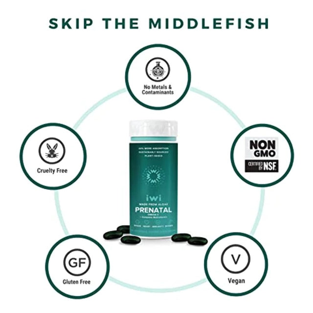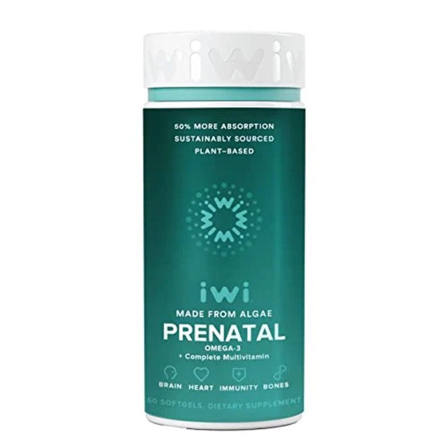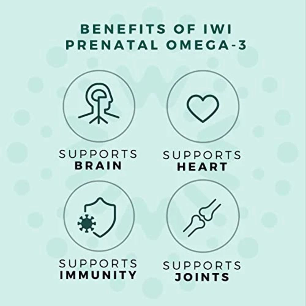 Iwi Life Prenatal Multivitamin with DHA, EPA, Omega Fatty Acids, Folate, Iron, Vitamin A, C, D3, E, K2, B6, B12, Calcium, Iodine, Niacin, Chlorophyll, Zinc - 60 Gluten-Free Softgels (30 Day Supply)