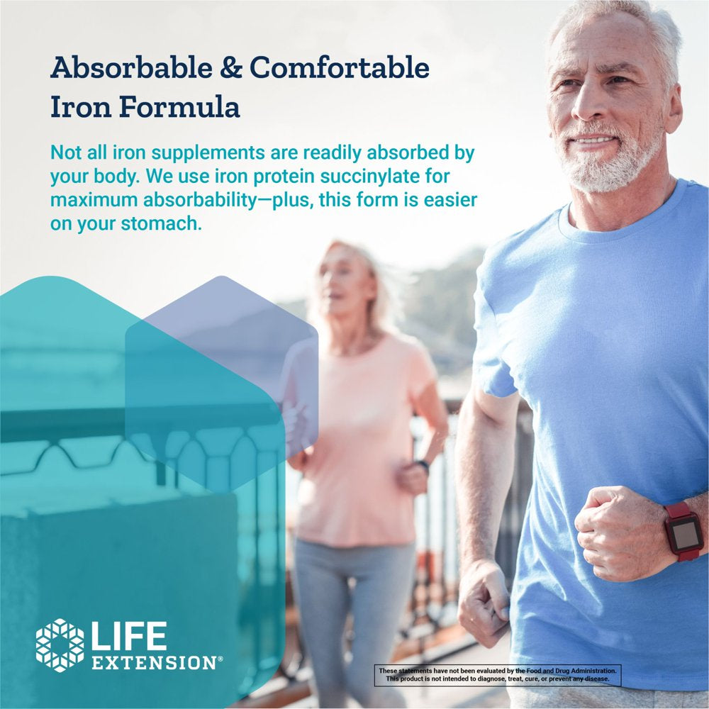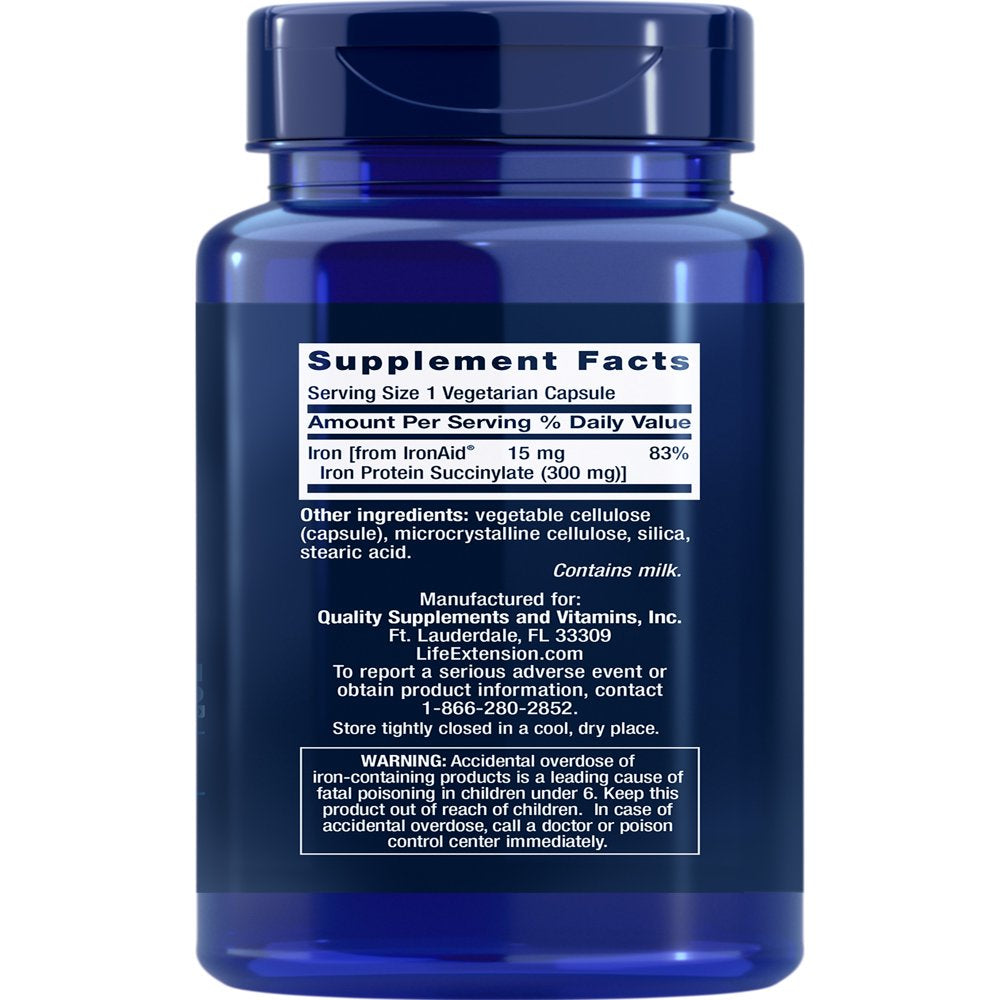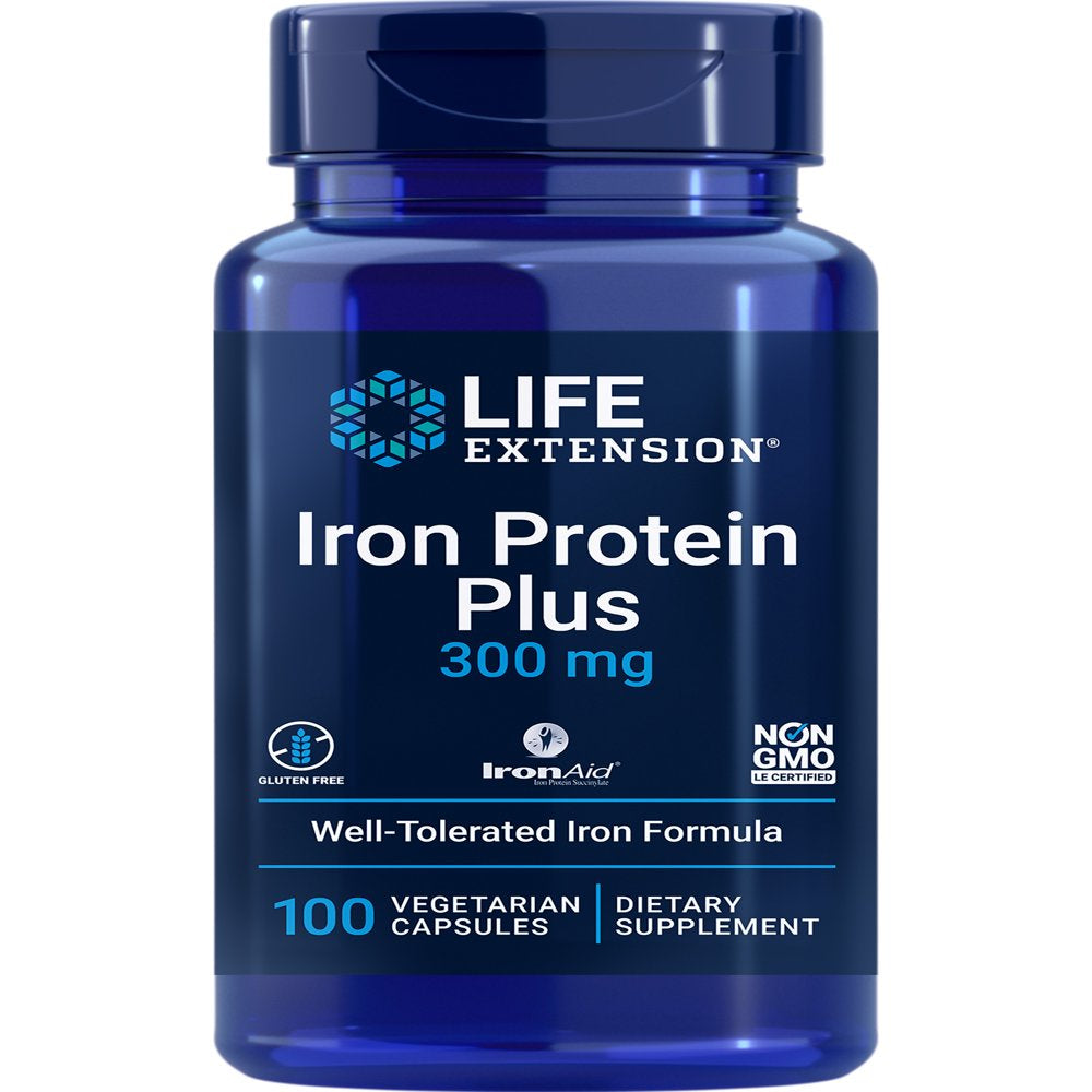 Life Extension Iron Protein Plus, 300 mg - Supports Red Blood Cell & Protein Production - Gluten-Free, Non-GMO - 100 Vegetarian Capsules