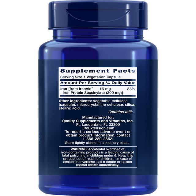 Life Extension Iron Protein Plus, 300 Mg - Supports Red Blood Cell & Protein Production - Gluten-Free, Non-Gmo - 100 Vegetarian Capsules