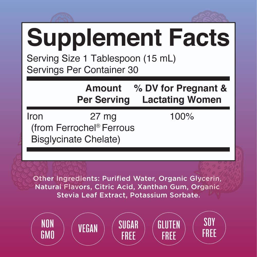 - Easy to Take Liquid: This essential mineral comes in an easy-to-take liquid form to support your iron intake, in a delicious berry flavor. Formulated for those Pregnant or Lactating. Shake well before use. Take 1 tablespoon once daily, by itself. Do not exceed the recommended dose. To best optimize absorption, take this product at least 2 hours before or after consuming calcium.