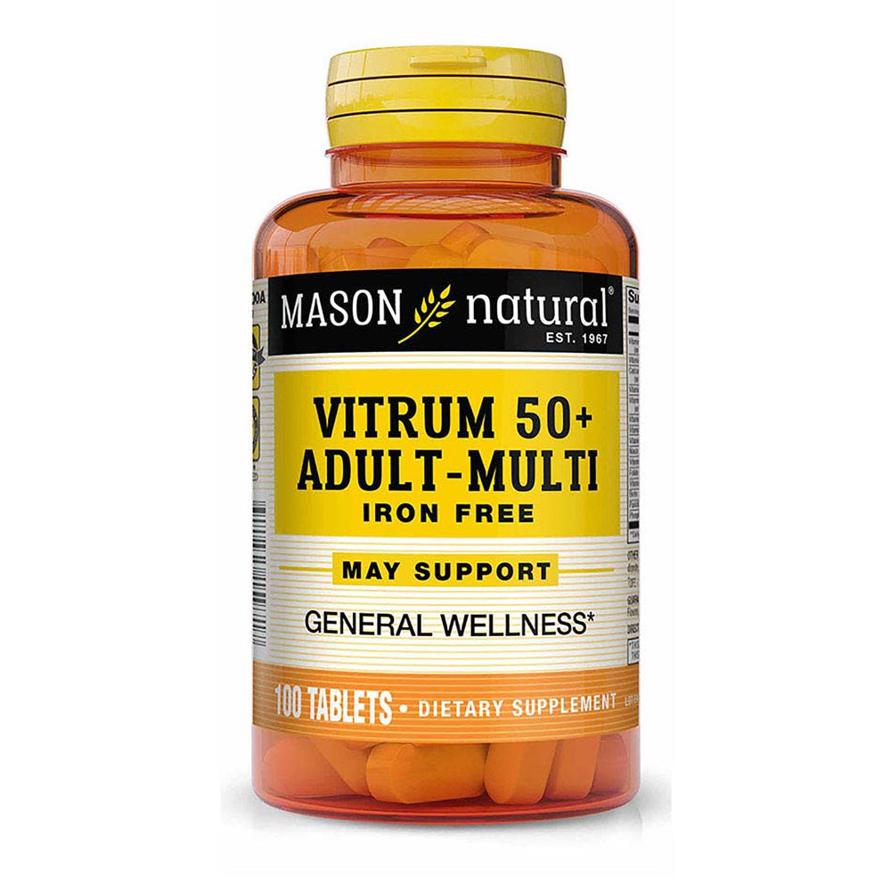 - Mason Natural Daily Multiple Vitamin, Iron-free for adults over 50. A full spectrum multivitamin with over 30 essential nutrients to help support many essential functions in the body, and general health and well-being.