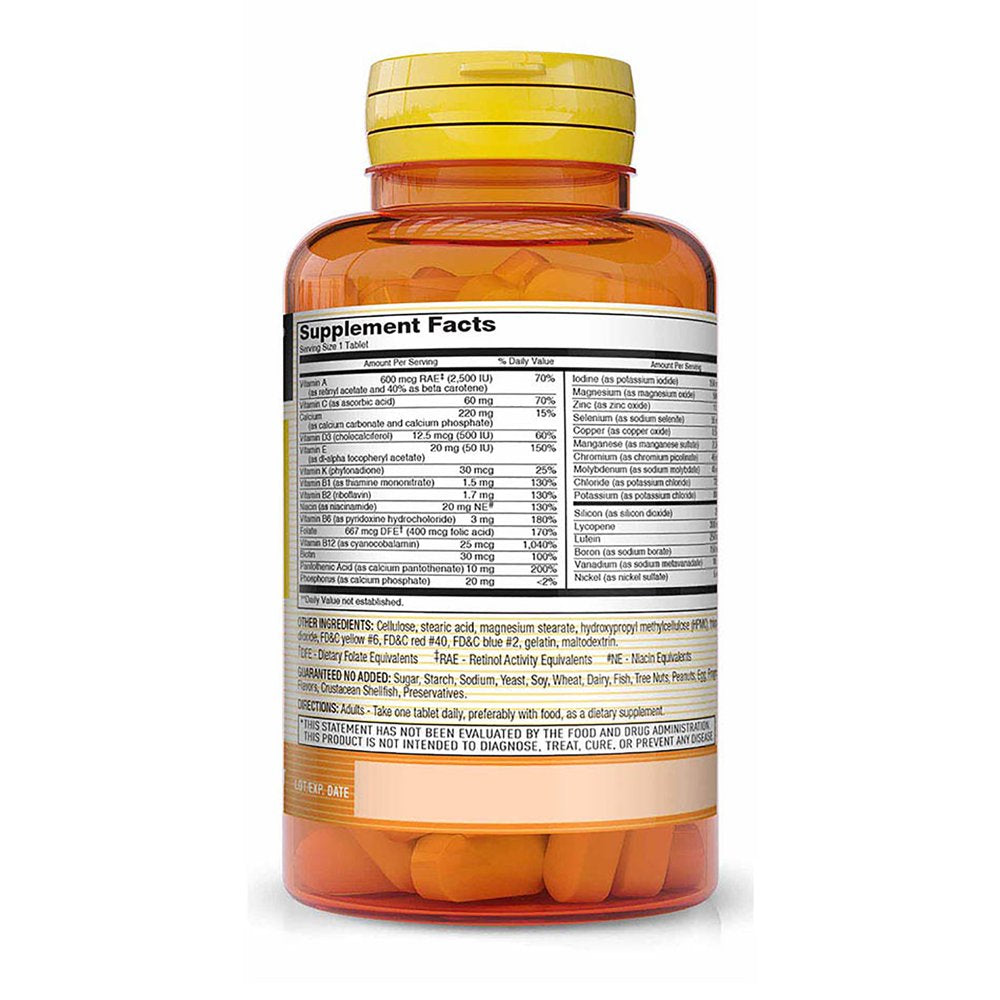 Vitrum 50 is a carefully formulated daily multiple vitamin for women and men over the age of 50. It’s an iron-free multivitamin specially formulated with over 30 different nutrients that may help support many essential functions including healthy immunity, eye health, and healthy cell development and function. Vitamin D is known to assist in the intestinal absorption and utilization of calcium. The B-complex vitamins folic acid, B12, B1, B2, B6, niacin and pantothenic acid are known to support the conversion of food to energy and healthy energy levels, red blood cell production, and healthy cardiovascular, pulmonary, and neurological function. Vitamins A, C and E helps may help to support the body’s antioxidant defense by helping to neutralize toxic free radicals. Our Daily Multiple Vitamins formula for adults over 50 provides a foundation of nutrition to ensure the body maintains optimal health and well-being.