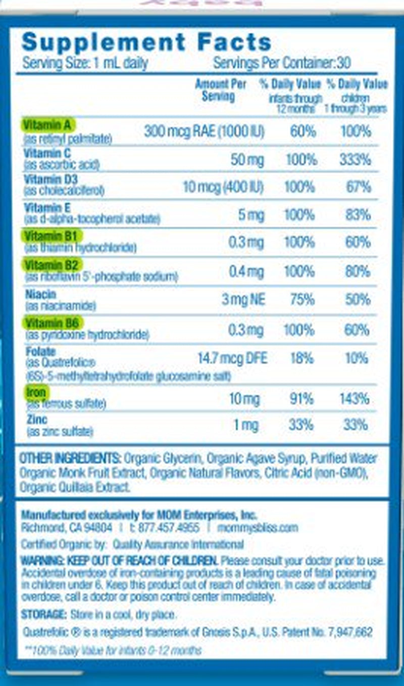 Mommy'S Bliss Baby Multivitamin and Iron Dietary Supplement, Grape Flavor, 30 Ml is backordered and will ship as soon as it is back in stock.