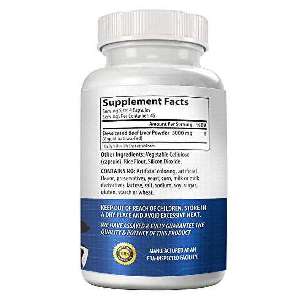 NASA Beahava Grass Fed Beef Liver (Desiccated) - 180 Capsules - Argentine Pasture-Raised Beef Liver Pills - 3000Mg Supplement Powder per Serving - Natural Iron, B12, Vitamin a for Energy - N is backordered and will ship as soon as it is back in stock.