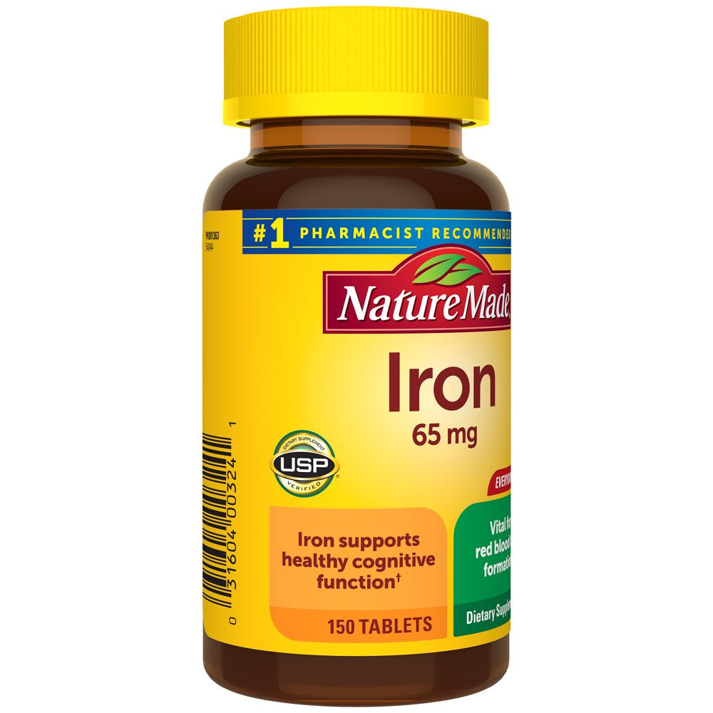- Iron support supplement: contains one 150 count bottle of Nature Made Iron 65 mg (325 mg Ferrous Sulfate)(1) Tablets for a 150-day supply
