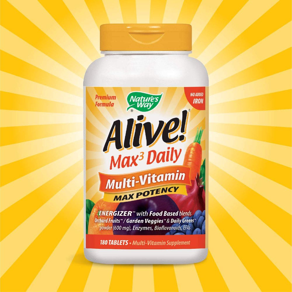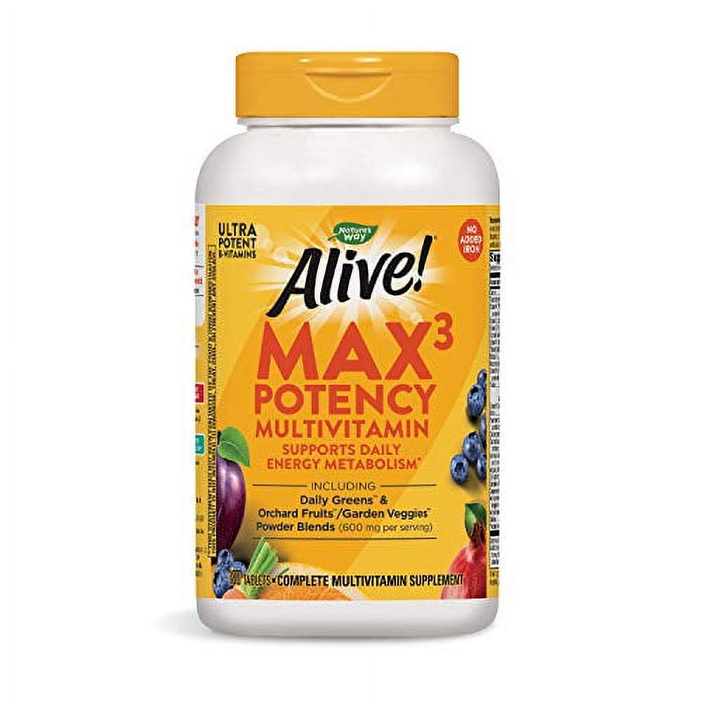 Nature'S Way Alive! Max3 Potency Multivitamin, High Potency B-Vitamins, No Iron, 180 Tablets