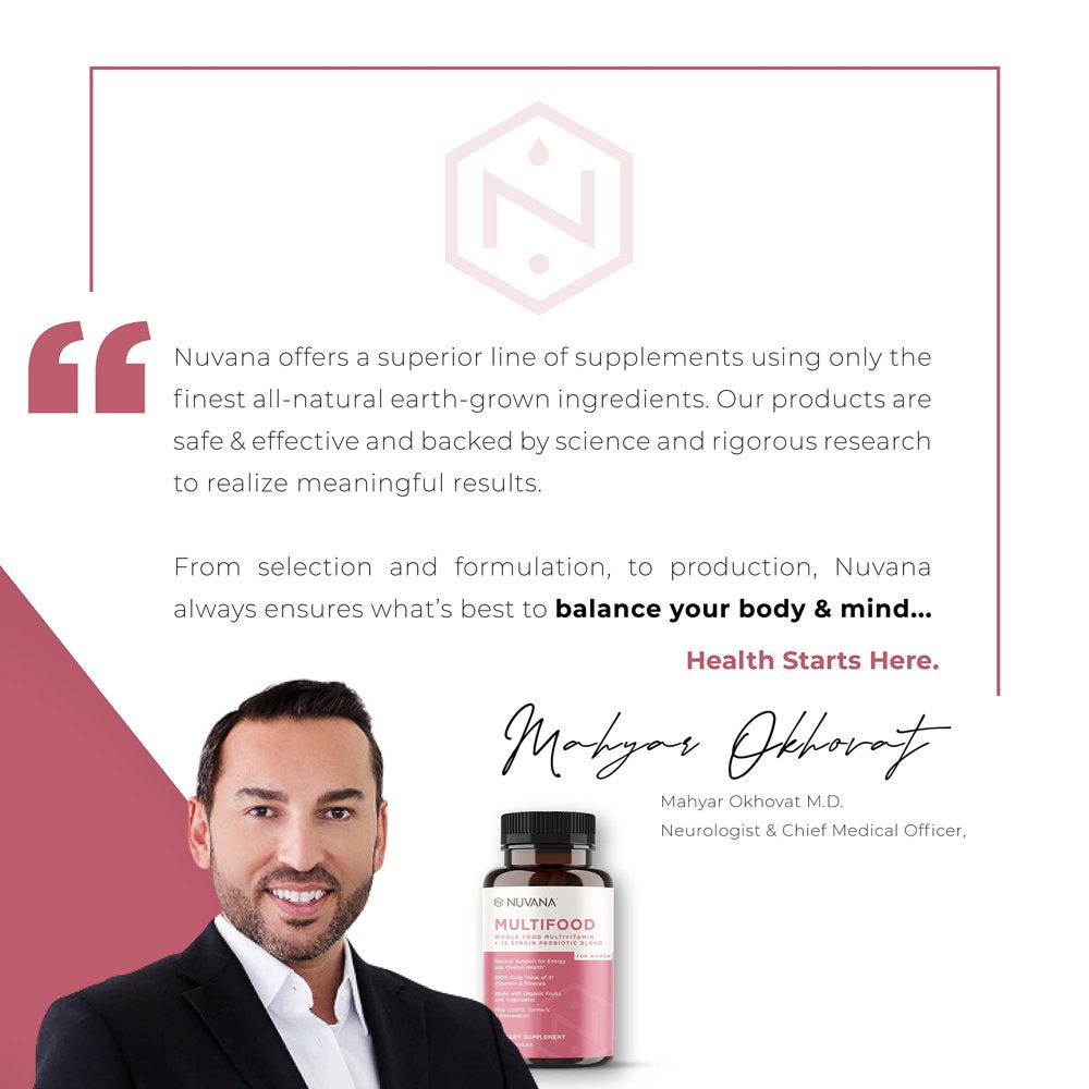 Nuvana Multifood-Women | Whole Food Multivitamin for Women with Probiotics, Organic Fruits & Vegetables, Iron, Coq10, Turmeric, Resveratrol & Prebiotic Fiber