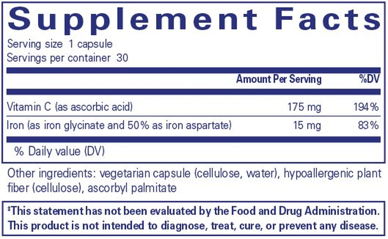 Pure Encapsulations Iron-C | Iron and Vitamin C Supplement to Support Muscle Function, Red Blood Cell Function, and Energy* | 30 Capsules