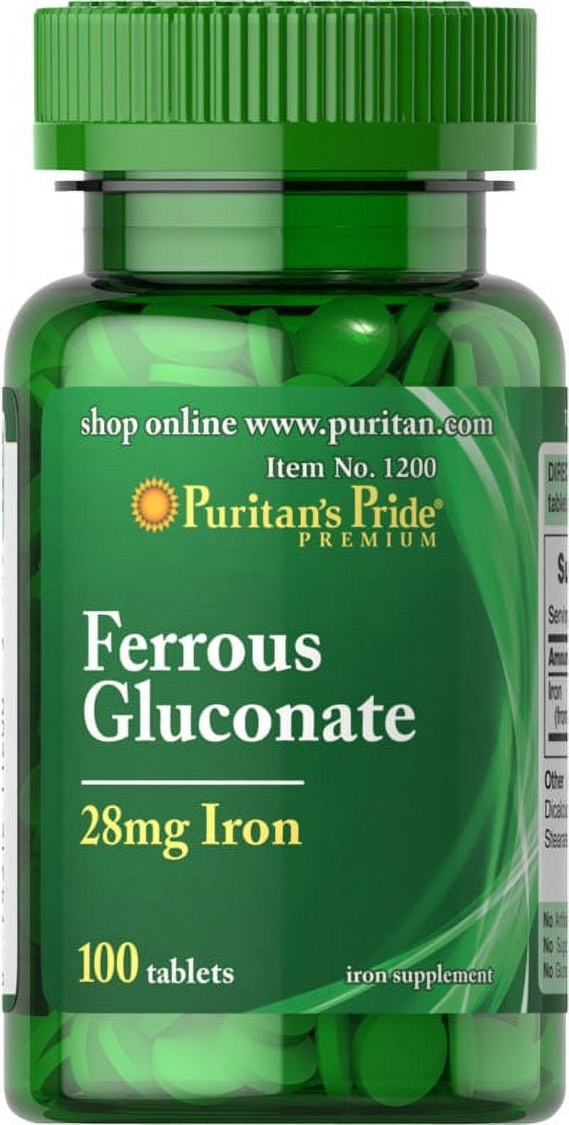 Puritan'S Pride Ferrous Gluconate (28 Mg Iron) - 100 Tablets