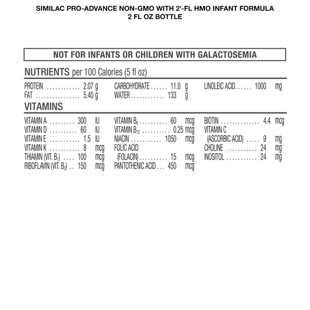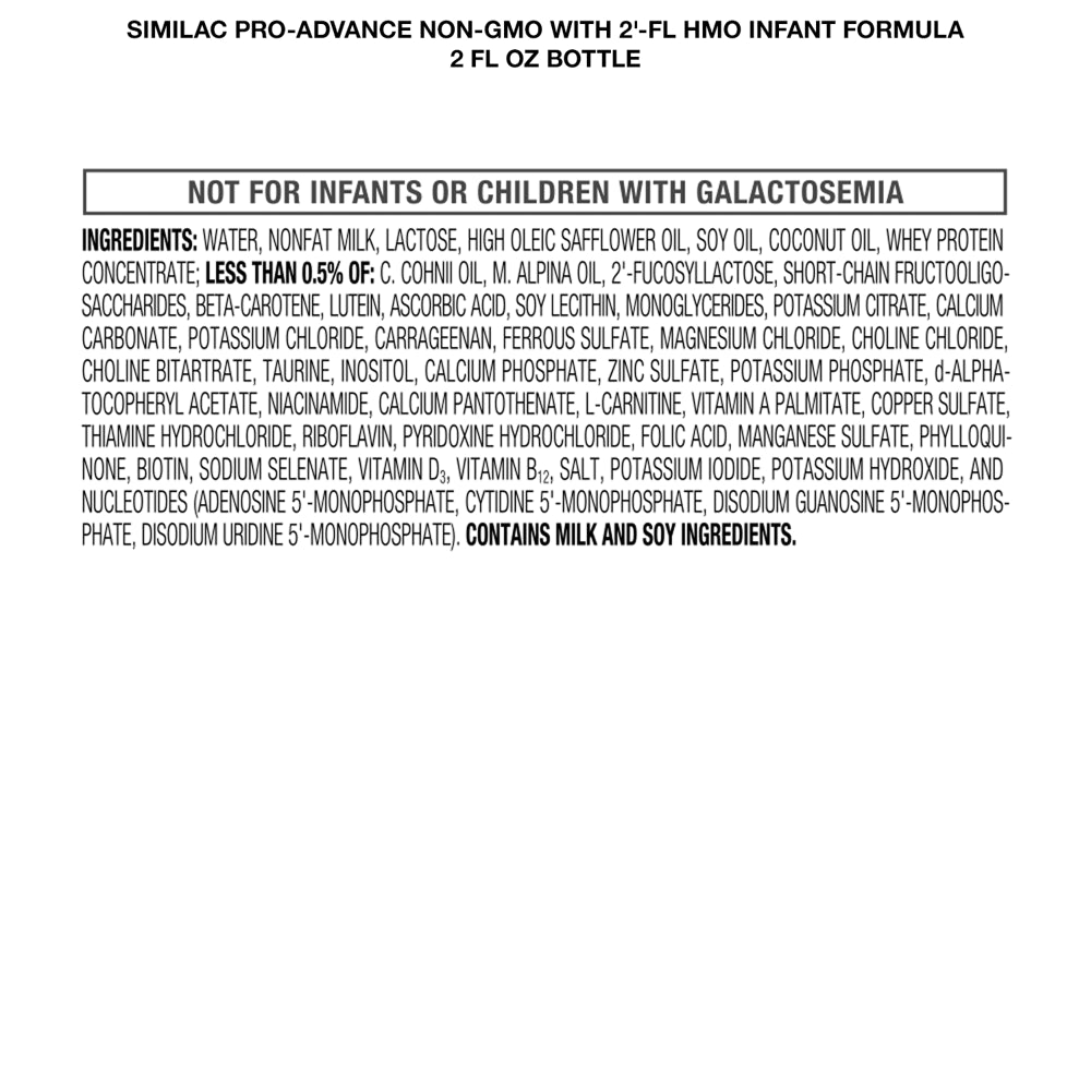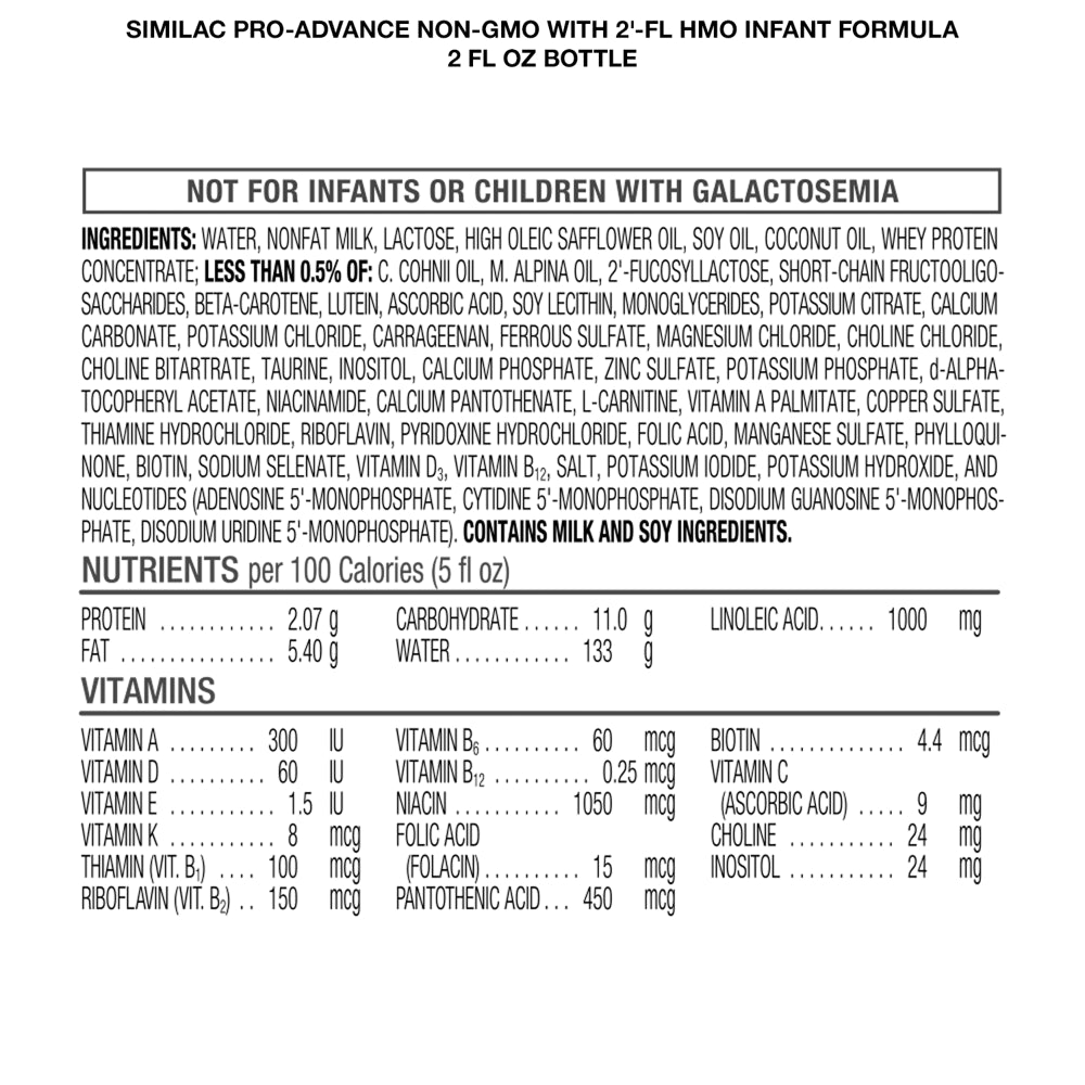 Similac Pro-Advance* with 2’-FL human milk oligosaccharide† (HMO) is complete nutrition designed to strengthen your baby’s immune system, from the #1 infant formula brand for immune support.‡ It has our exclusive blend of DHA, lutein, and vitamin E to help support baby’s brain and eye development.* Not for infants or children with galactosemia.† Not from human milk.‡ Based on pediatrician recommendations.§ Total US infant formula, all outlets as of 6/2020, Nielsen data.‖ No significant difference has been shown between milk derived from rbST-treated and non-rbST-treated cows.