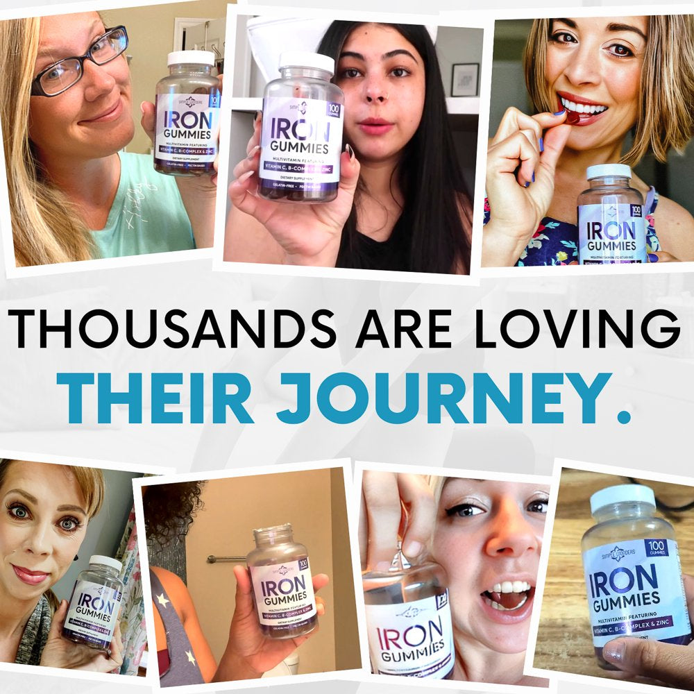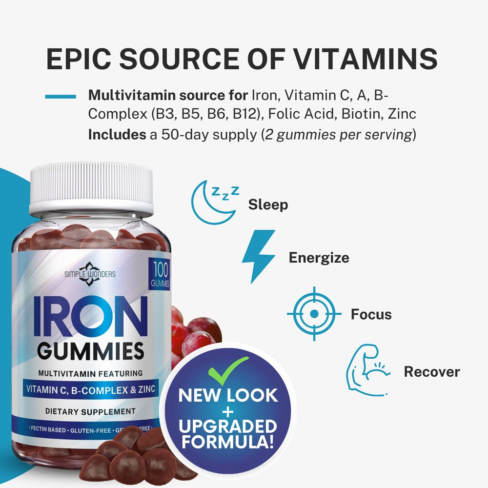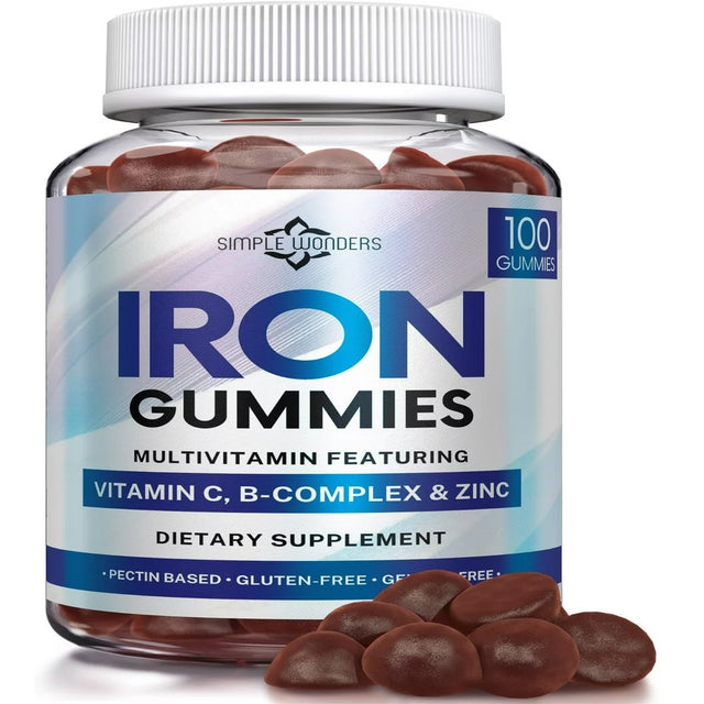 Simple Wonders Iron Gummies for Women, Men & Kids, Iron Chewable Supplement Multivitamin, 100 Count
