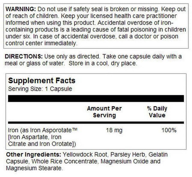 Solaray Iron Asporotate 18 mg Capsules, 100 Ct