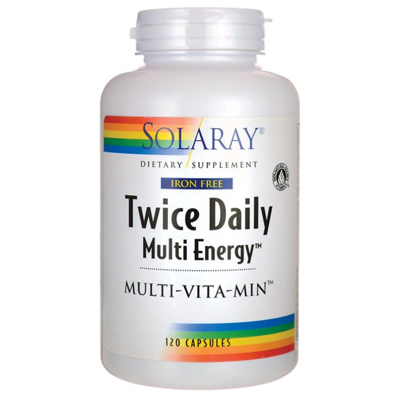 Looking for a multivitamin that goes way beyond simple, essential nutrition? You’ve found it! Solaray Twice Daily Iron-Free Multi Energy Multivitamin is formulated for simple yet powerful supplementation and quality that can’t be matched! Because living your best life means feeling your best, our Twice Daily Multi Energy Multivitamin is packed with essential vitamins and minerals and helps support both healthy immune system function and energy levels. Powerfully potent, each 2-capsule serving contains 100% DV or more of vitamins A, C, E, B and more. You won’t find a higher quality multi! Like all Solaray products, Twice Daily Iron-Free Multi Energy Multivitamin is lab verified for potency, purity, and identity. Confidence in the Solaray name is just one of the reasons we’ve been around so long and maintain our place as a leader in the industry. Unlike many other companies, we manufacture almost all our own products, which gives us the ability to thoroughly test and screen raw ingredients for the slightest amount of impurities and manage the production process to provide the best possible quality. Rest assured, only the purest formulas ever reach your cabinet.