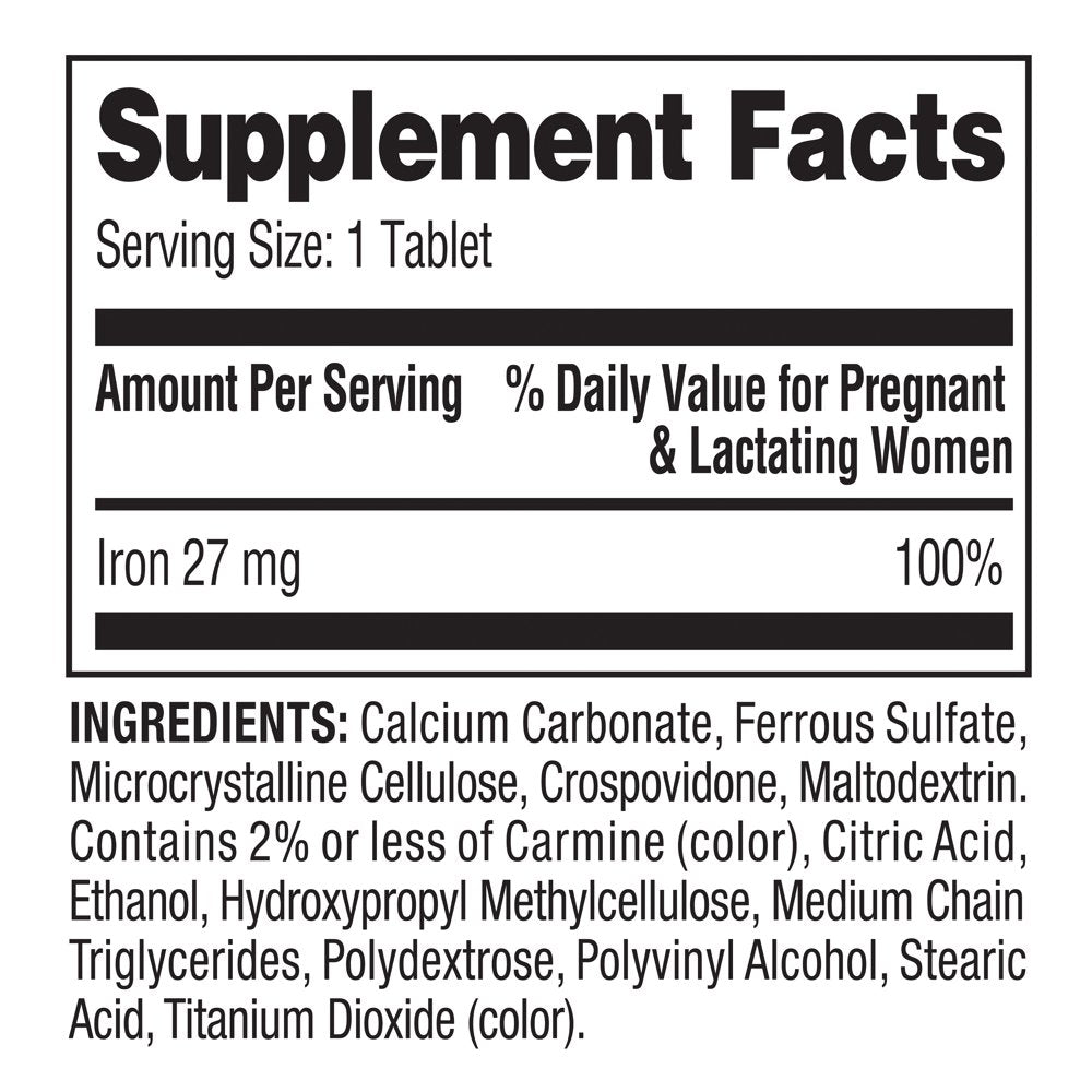- Spring Valley Iron Prenatal Health Dietary Supplement Tablets, 27 mg, 250 Count
