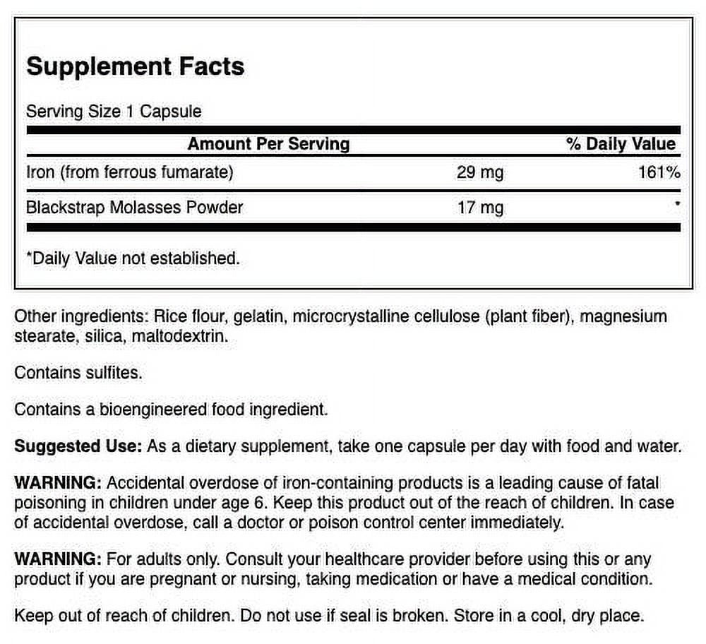 Swanson Blackstrap Molasses with Iron Capsules, 29 Mg, 120 Count - 1 Pack is backordered and will ship as soon as it is back in stock.
