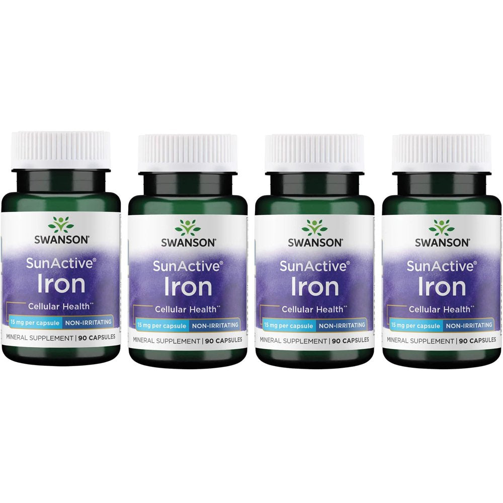 Swanson Sunactive Iron - Non-Irritating 15 Mg 90 Caps 4 Pack