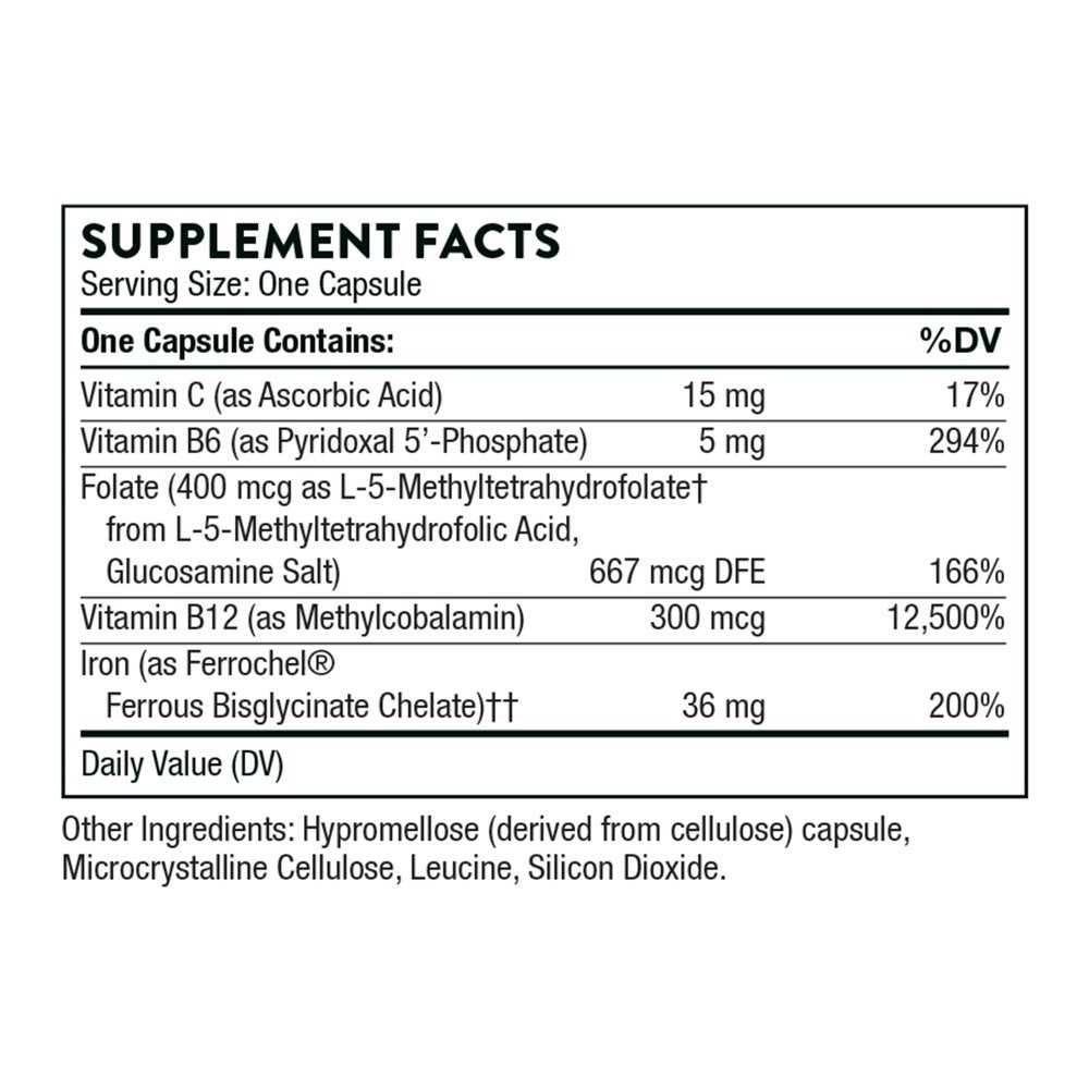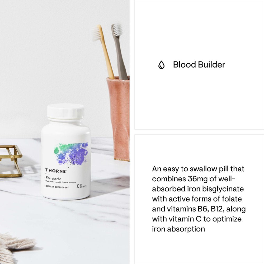 Thorne Ferrasorb, 36 Mg Iron with Essential Nutrients, Complete Blood-Building Formula, Elemental Iron, Folate, B and C Vitamins for Optimal Absorption, Gluten-Free, 60 Capsules