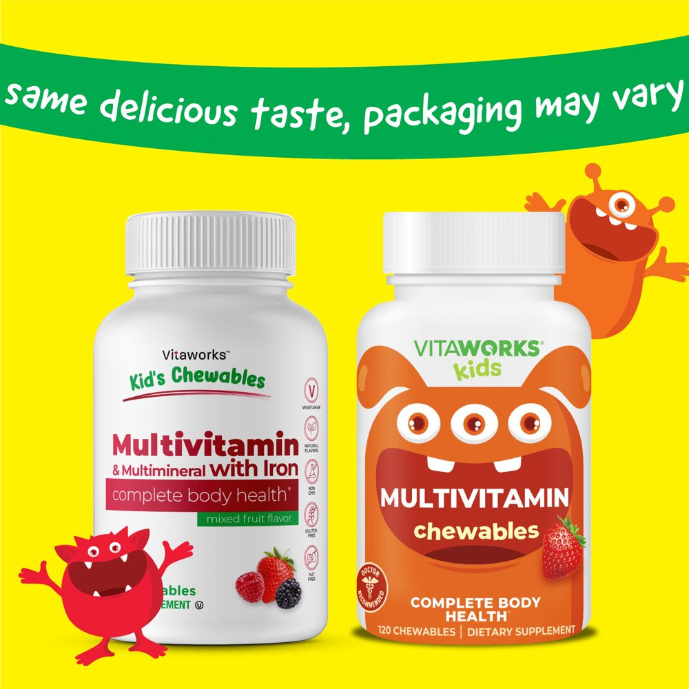 Vitaworks Kids Multivitamin with Iron & Minerals - Digestive Support for Children - 120 Chewables